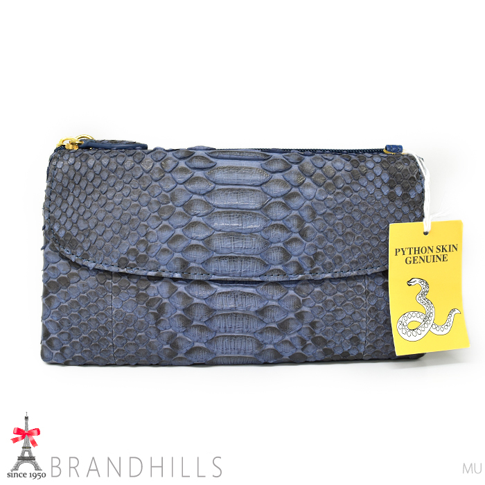 パイソン ショルダーバッグ レディース マット加工 イリスブルー スネーク 錦ヘビ ウォレット 3WAYポーチ 新品