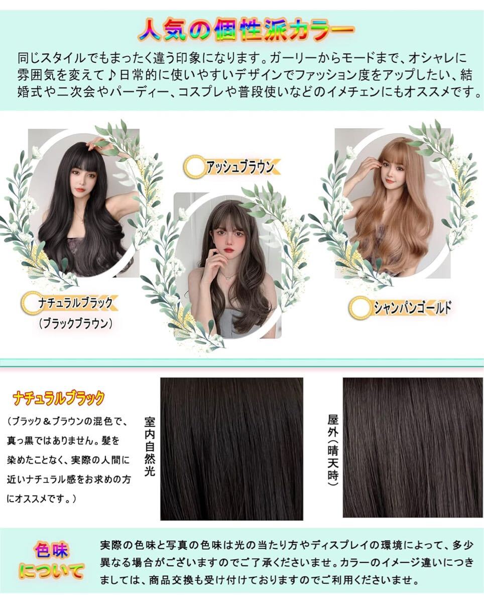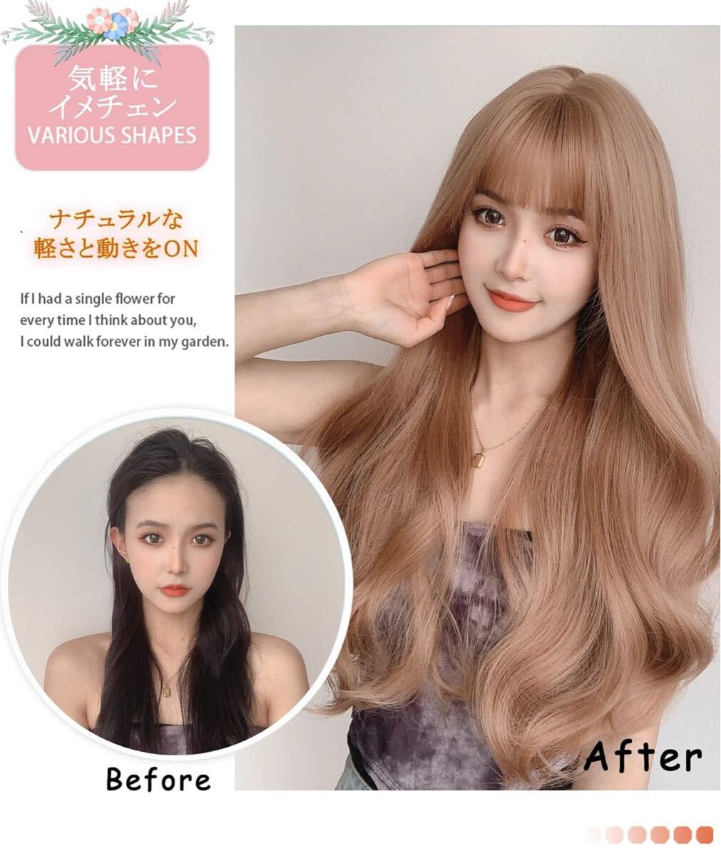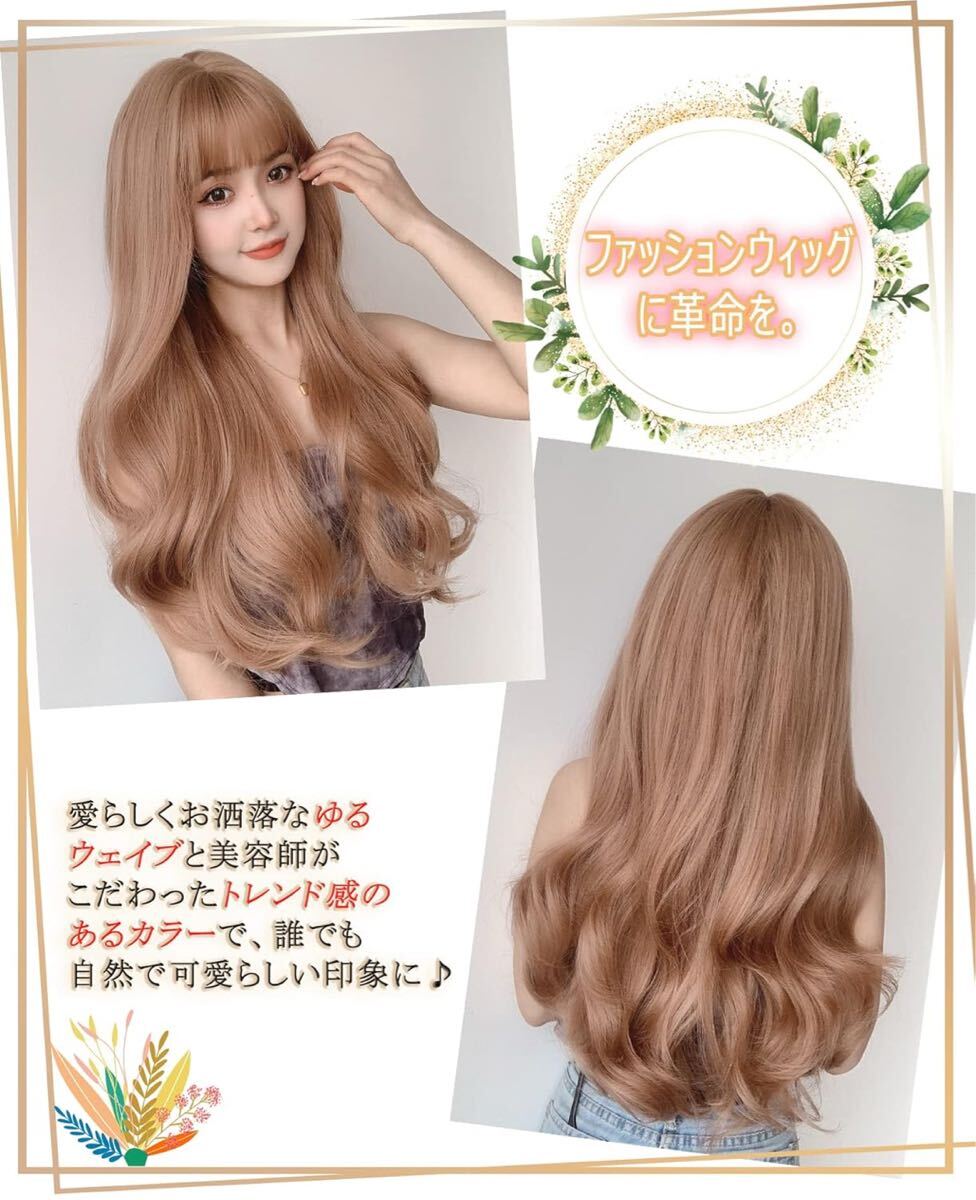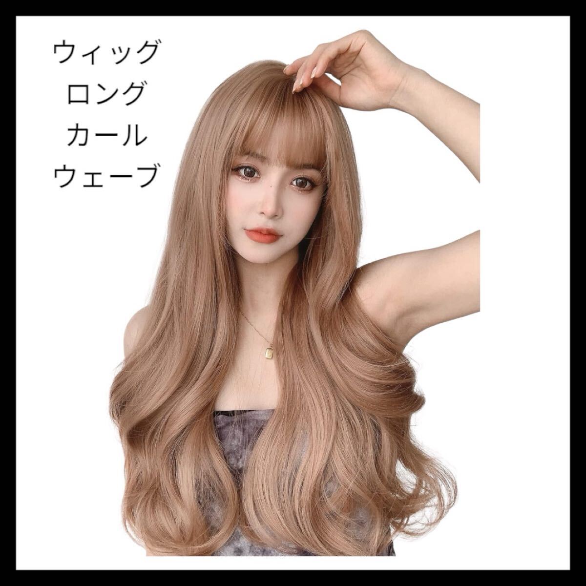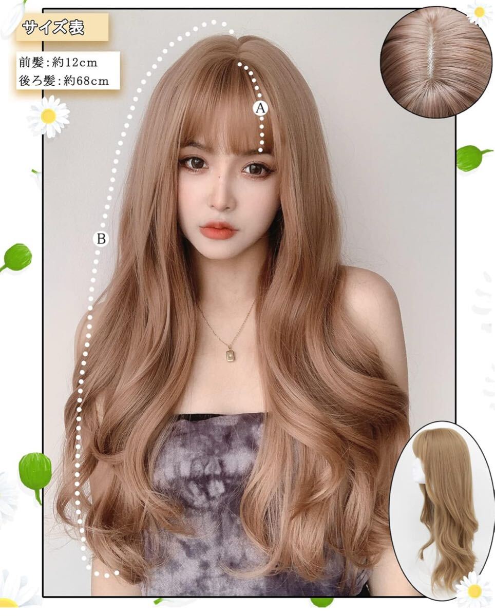 ウィッグ ロング カール ウェーブ かつら フルウィッグ ギャル 自然 セミロング 女性 ぱっつん 小顔 人気 耐熱 wig 原宿系 ファッション ネット/櫛付き シャンパンゴールド
