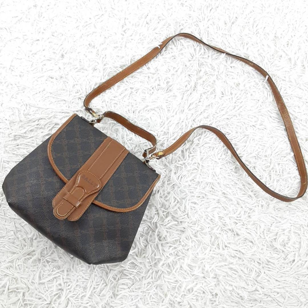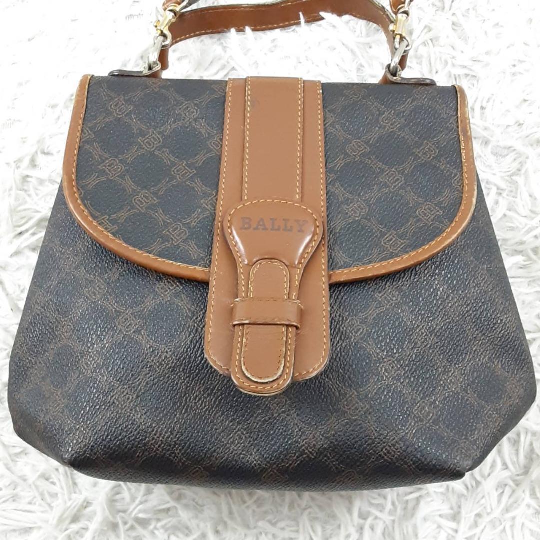 美品◎BALLY バリー 2way ショルダーバッグ ハンドバッグ 総柄 アナグラム PVC レザー 本革 ブラウン 茶 ベージュ 白茶 80s 80's 90s 90's ヴィンテージ ビンテージ vintage