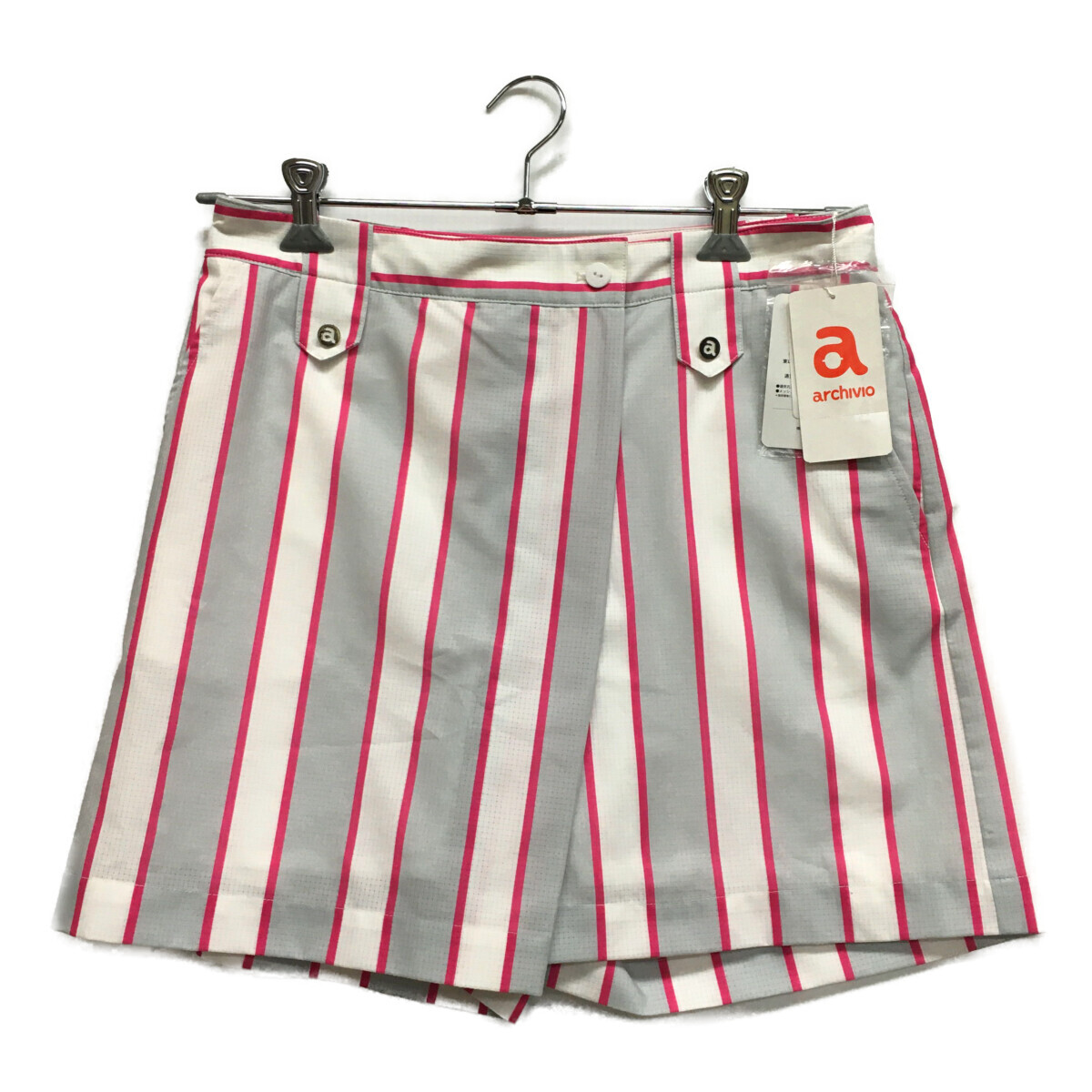 coco 未使用品【値下げ】 アルチビオarchivio ショートパンツ 40(L) グレー×白 ストライプレディース レターパックプラス発送可 97078