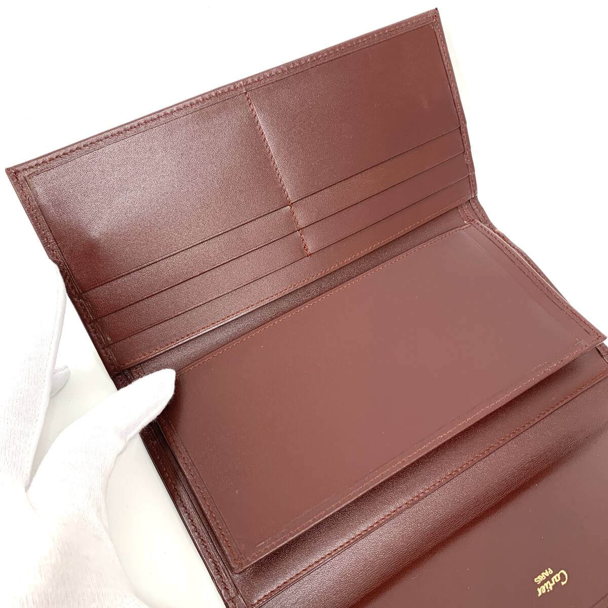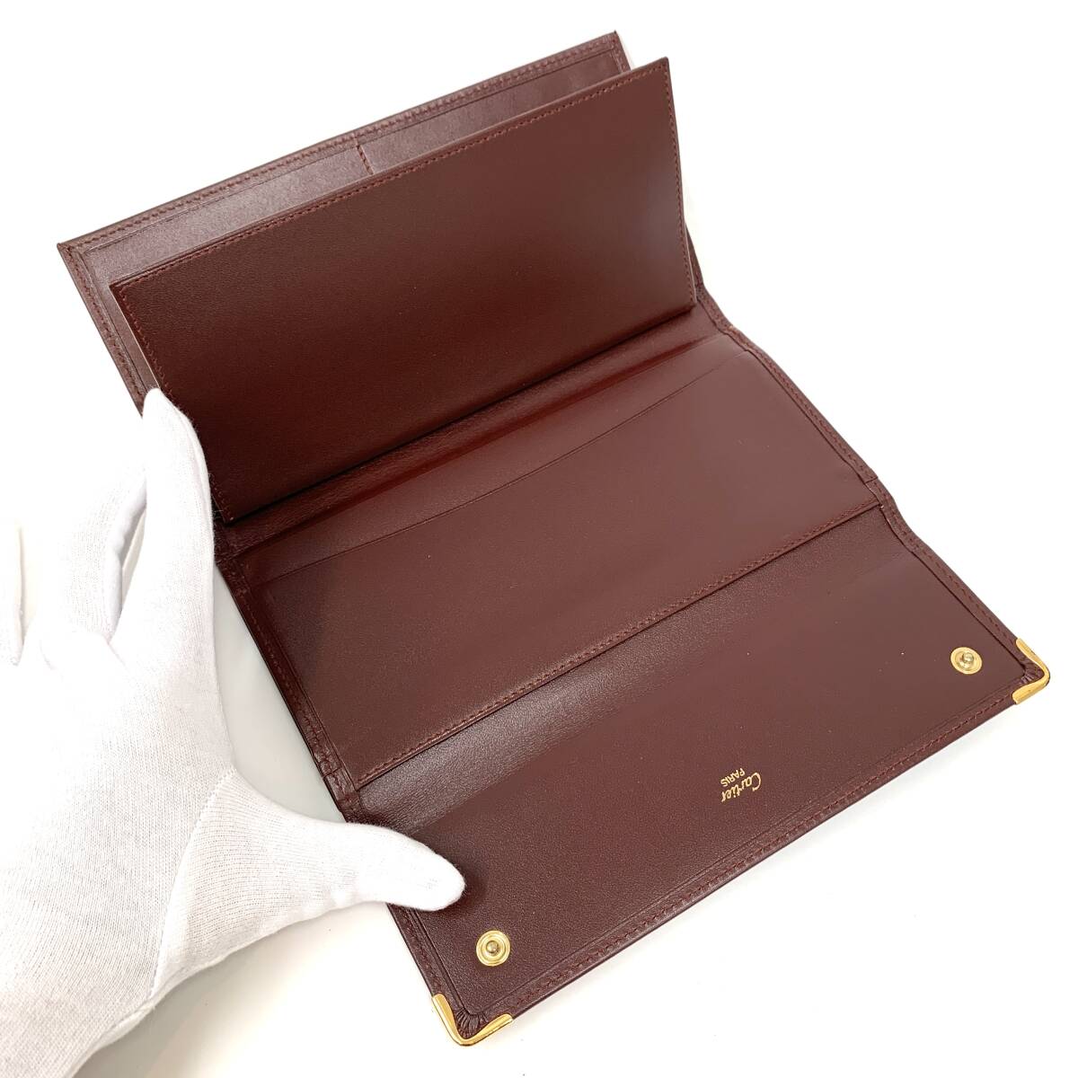 <状態> A <サイズ>縦10㎝×横19㎝ <収納> 札入れ×1 がま口小銭入れ×1 カードポケット×6 ポケット×5 <カラー>ボルドー <素材> レザー <付属品> クロス 外側は若干の傷や角擦れがありますが、気になるほどではなく綺麗です 小銭入れに若干の傷がありますが、気にならない程度です。 全体的に綺麗な美品です。 詳しい状態は画像にてご確認ください。 色合いが光などで若干異なる場合がございます。 神経質な方は入札お控えください。 本物鑑定済み。 | |