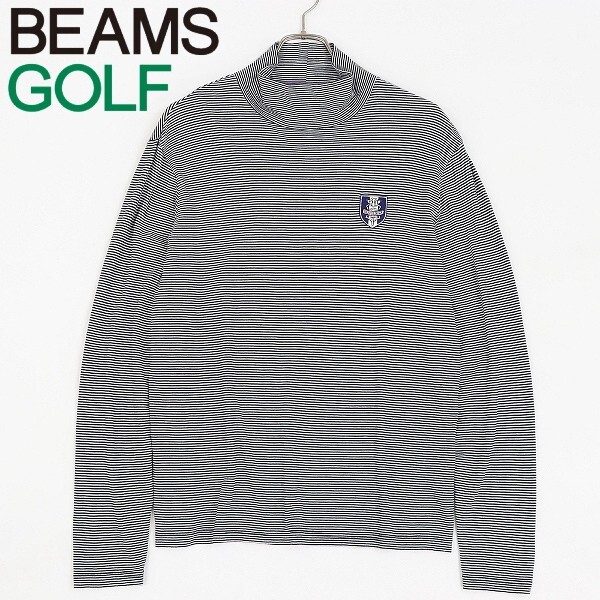 | ◆BEAMS GOLF PURPLE LABEL ビームス ゴルフ パープルレーベル ボーダー柄 ロゴワッペン ハイネック 長袖 Tシャツ ブラック×ホワイト XL | |