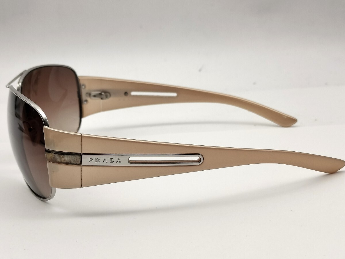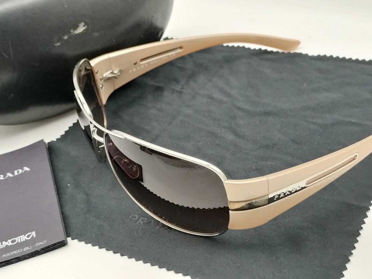 良品 PRADA プラダ サングラス ロゴ ベージュ シルバー SPR69H ケース付き