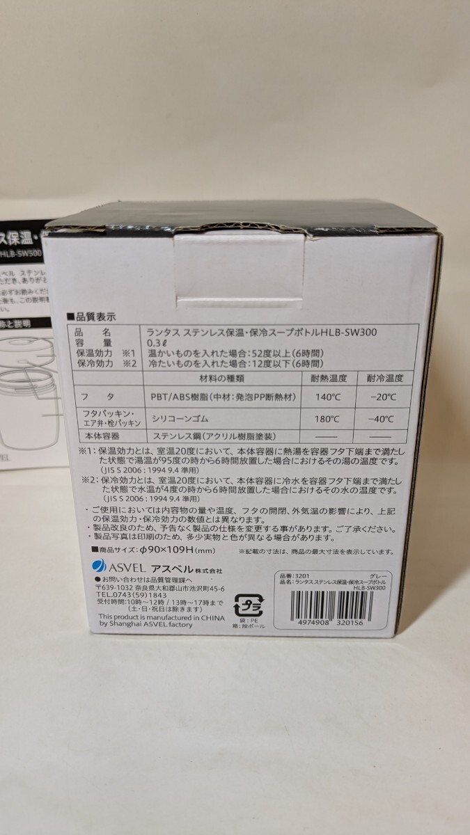 ステンレス 保温 保冷 スープボトル 300mlグレー