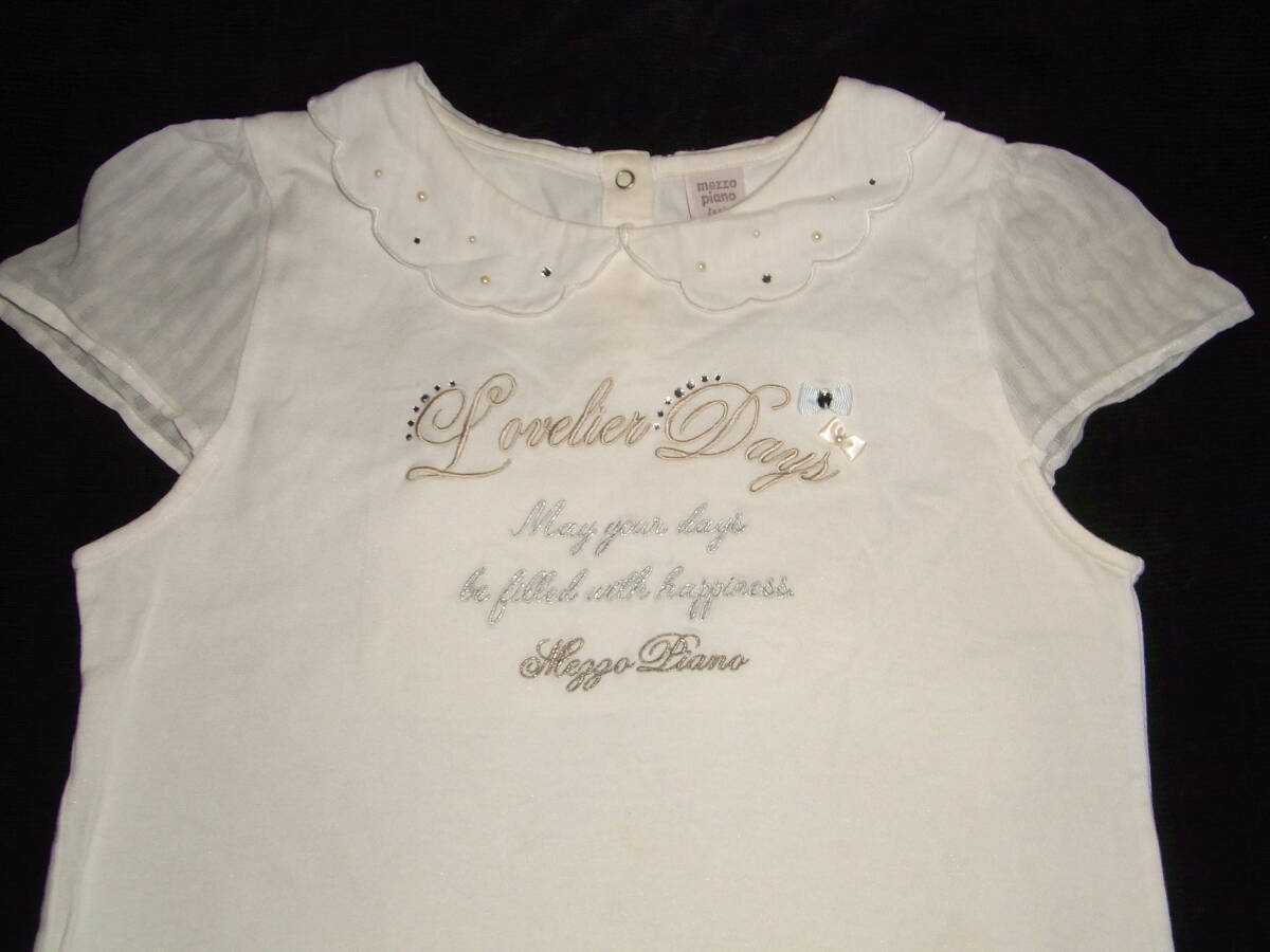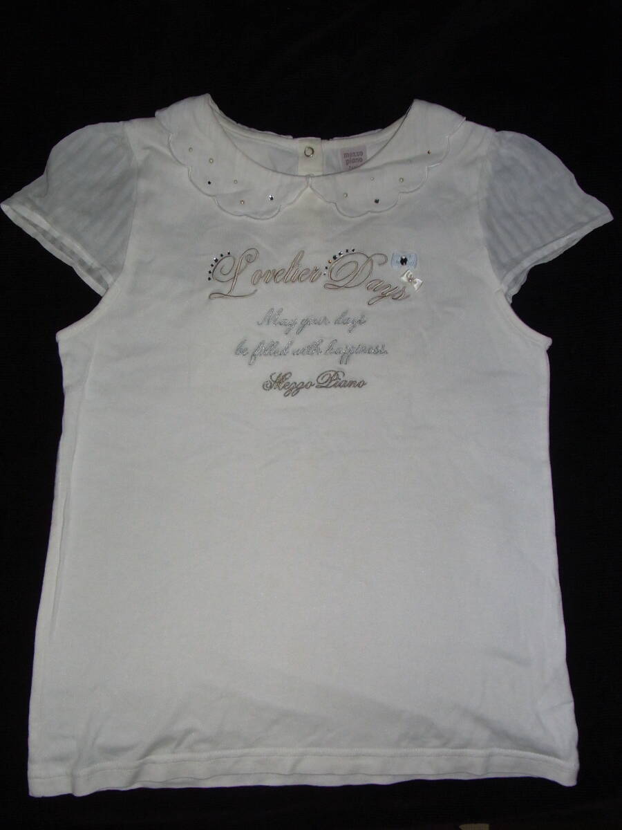 ★美品★メゾピアノジュニア★可愛い白い襟★100%棉★ホワイト色★半袖Tシャツ★サイズM★150