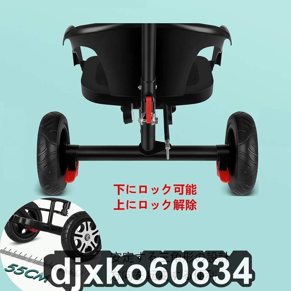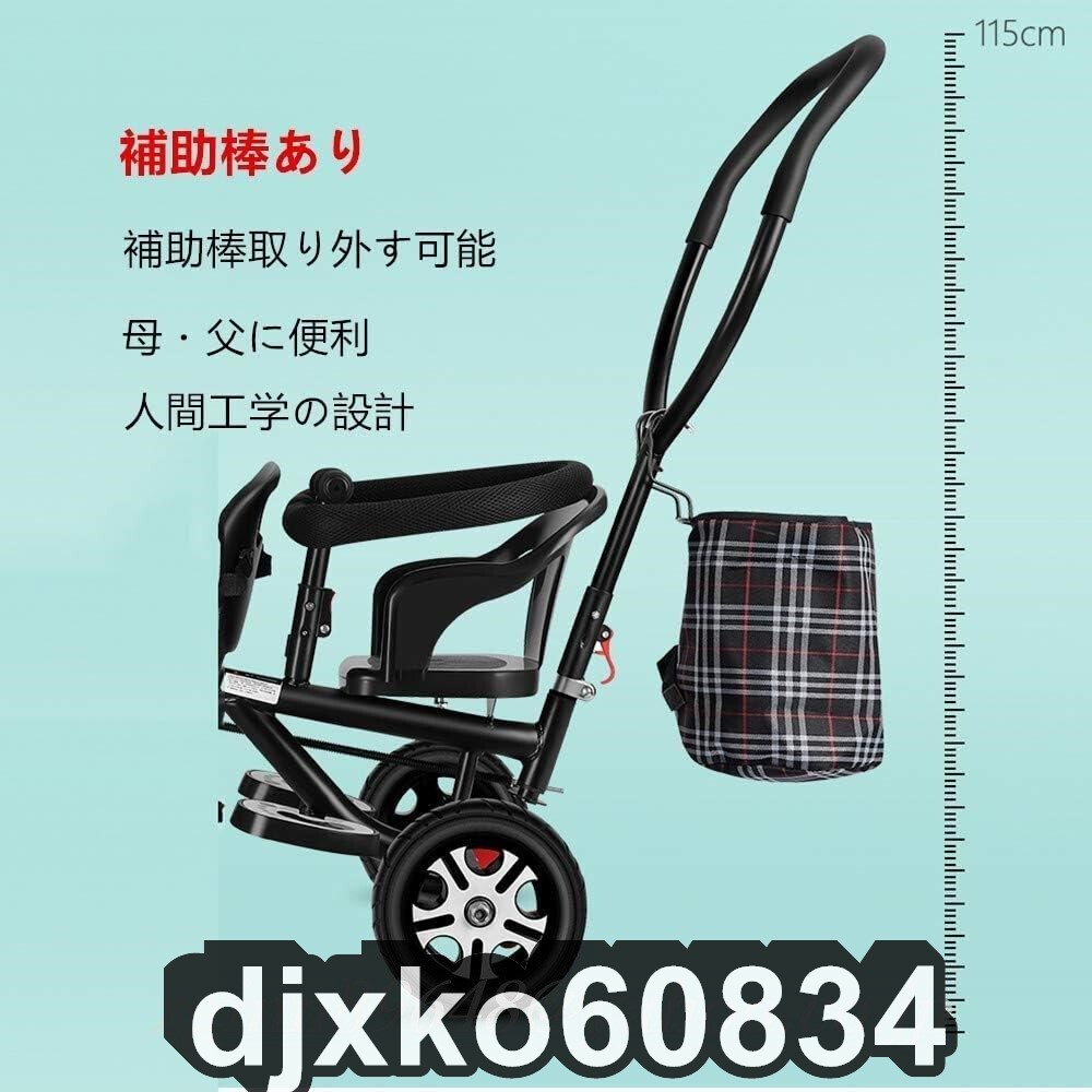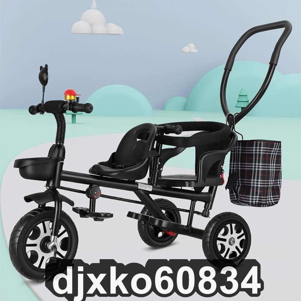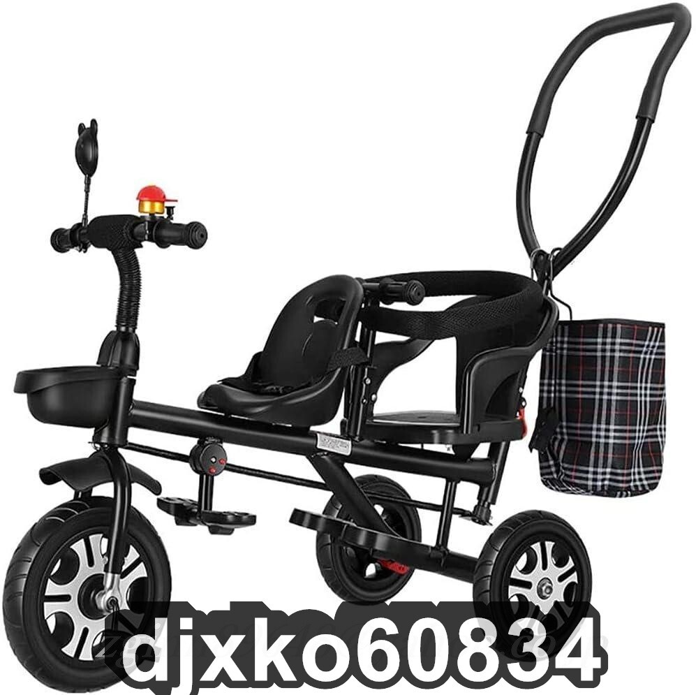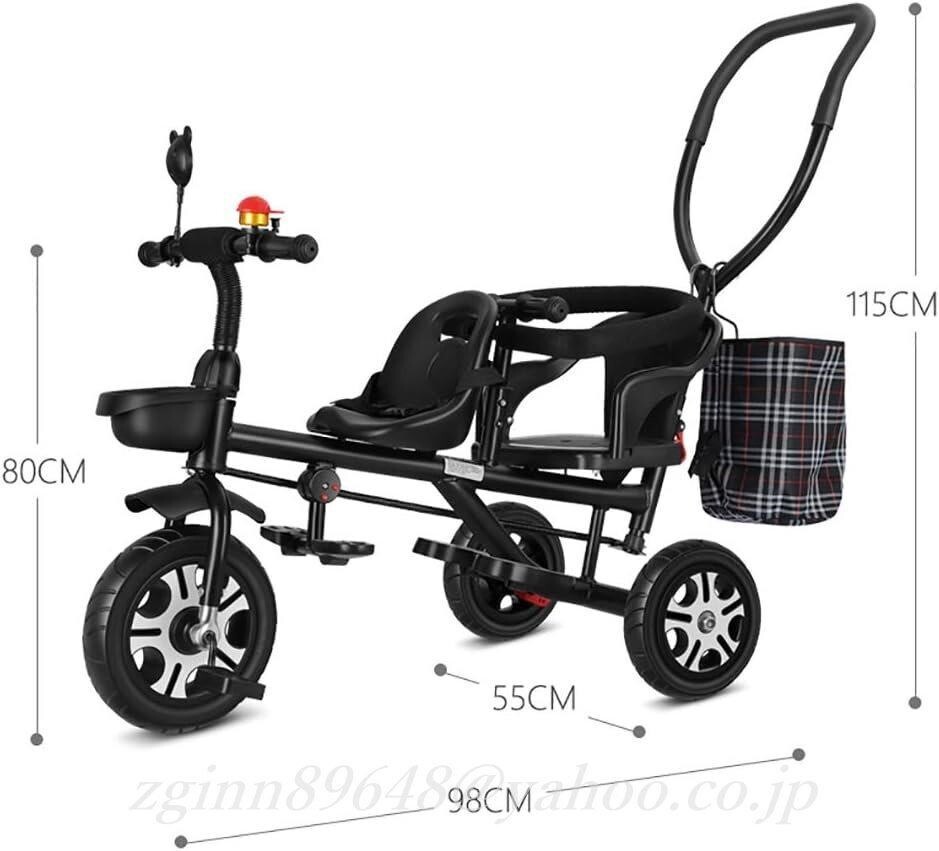 二人乗り 三輪車 ベビーカー 双子用 子供用 自転車 補助棒付き 両点シートベルト付き 物置くカゴ付き 補助棒取り外す可能 室内兼用