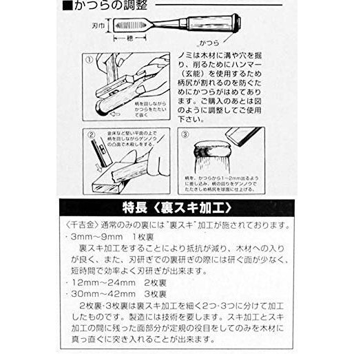 千吉 金 追入のみ 2枚裏 24mm 裏スキ加工 手造り本鍛造 安来鋼白紙2号使用 彫刻鑿 木工鑿 叩き鑿 日本製