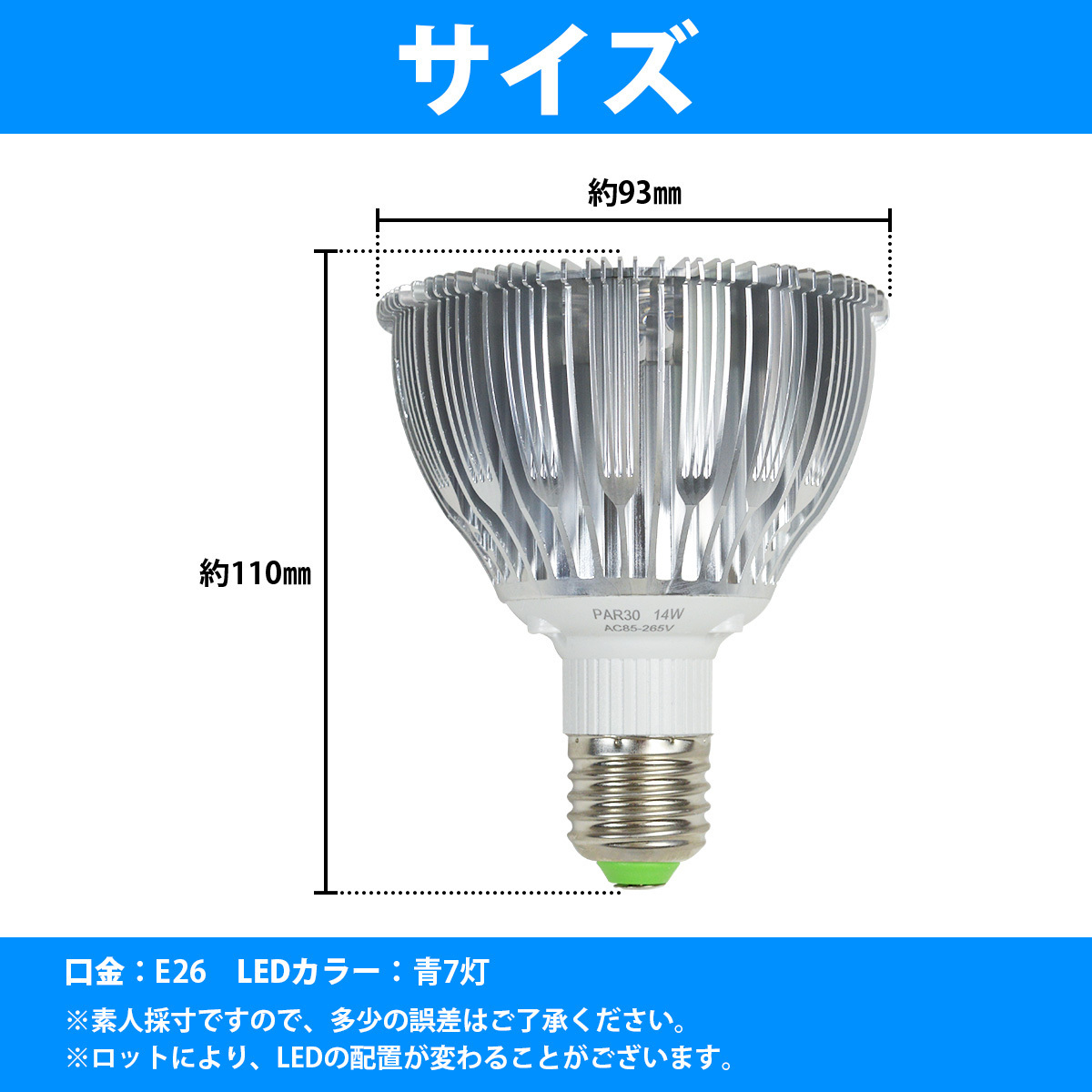 水槽 用 スポット ライト 14W 電球 7LED 青7灯 口金 E26 アクアリウム 電球 照明 植物育成 水草 サンゴ 熱帯魚 観賞魚