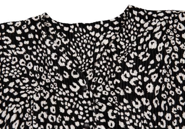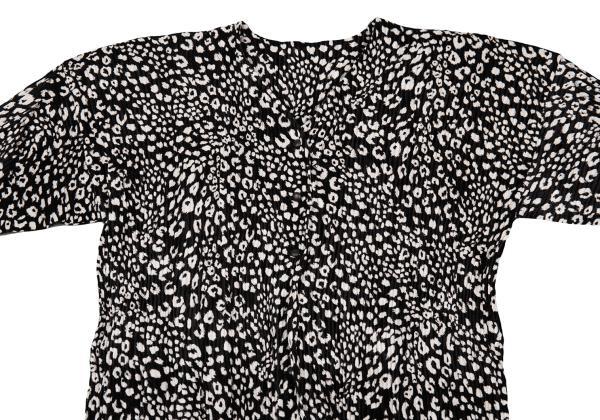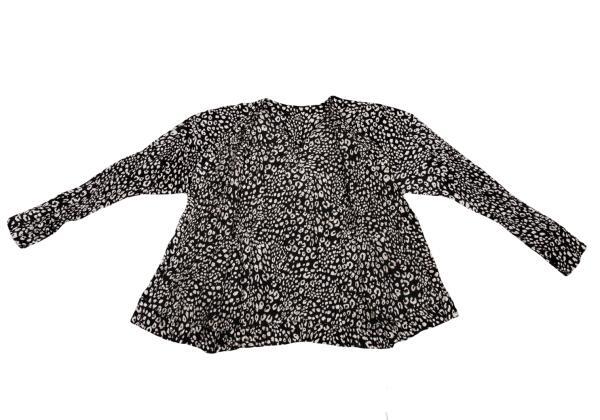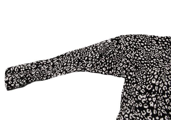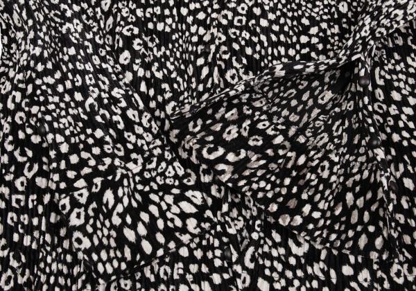 | イッセイミヤケISSEY MIYAKE レオパードベロアプリーツブラウス 黒オフM |