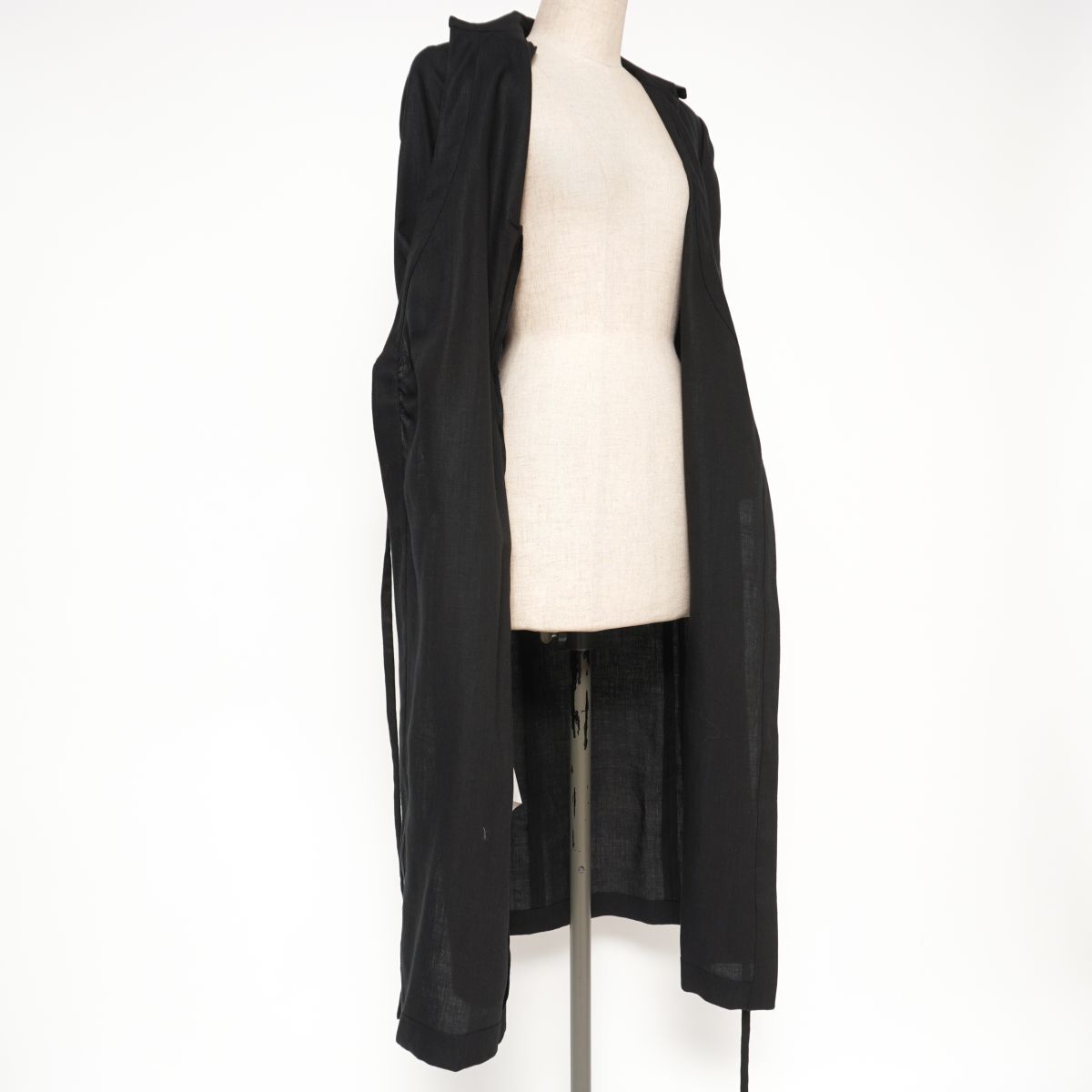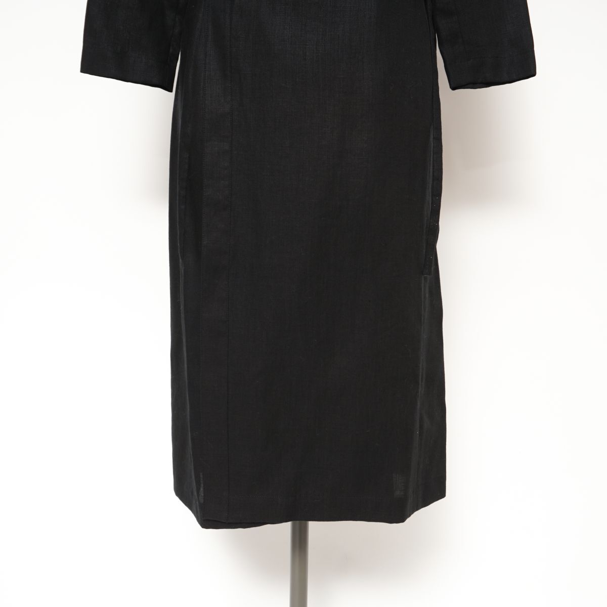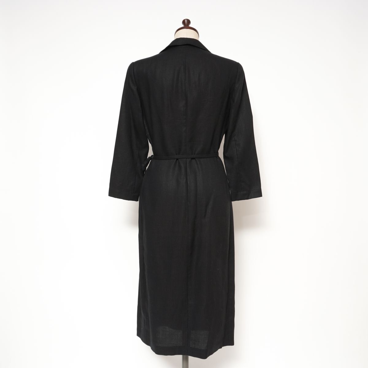 美品 GIORGIO ARMANI ジョルジオアルマーニ リネン100%カシュクールワンピース ミモレ丈 レディース ブラック 黒 サイズ40*BD1222