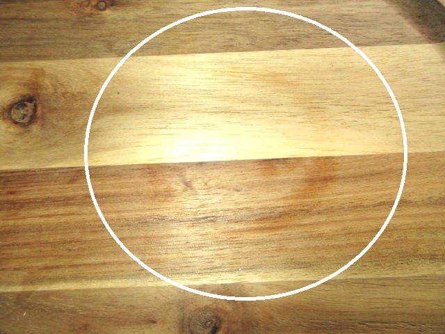 ★表面に目立つコップ跡による丸い水滴汚れとシミのような汚れが数ヶ所あります。