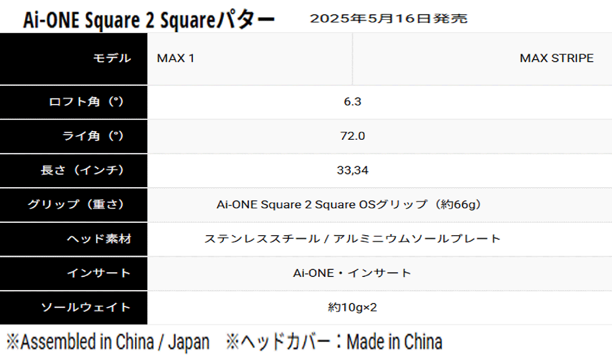 新品■オデッセイ■2025.5■AI-ONE SQUARE 2 SQUARE■MAX STRIPE■ストロークラボシャフト■33.0■扇のような形状で約10.7cmのロングボディ