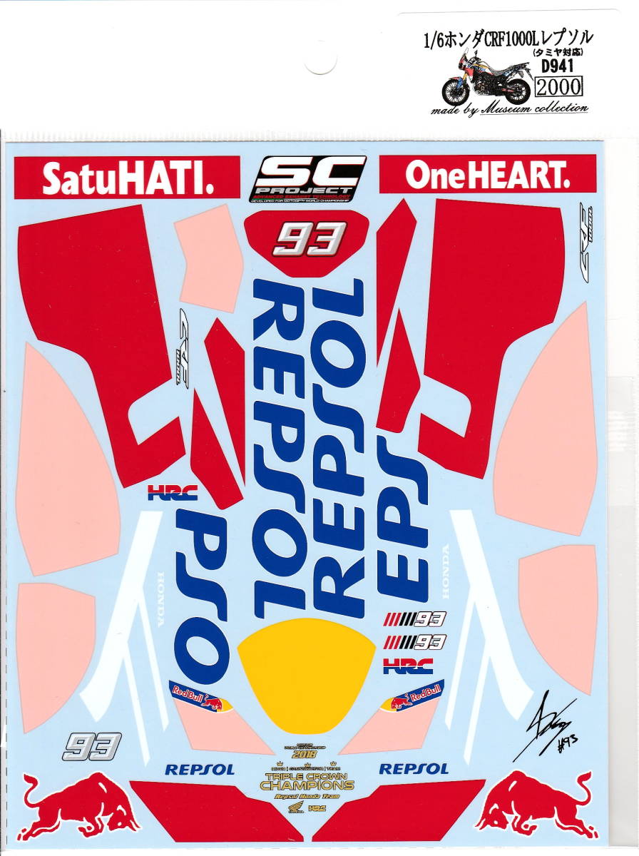 1/6ホンダCRF1000Lレプソルカラー#93デカール