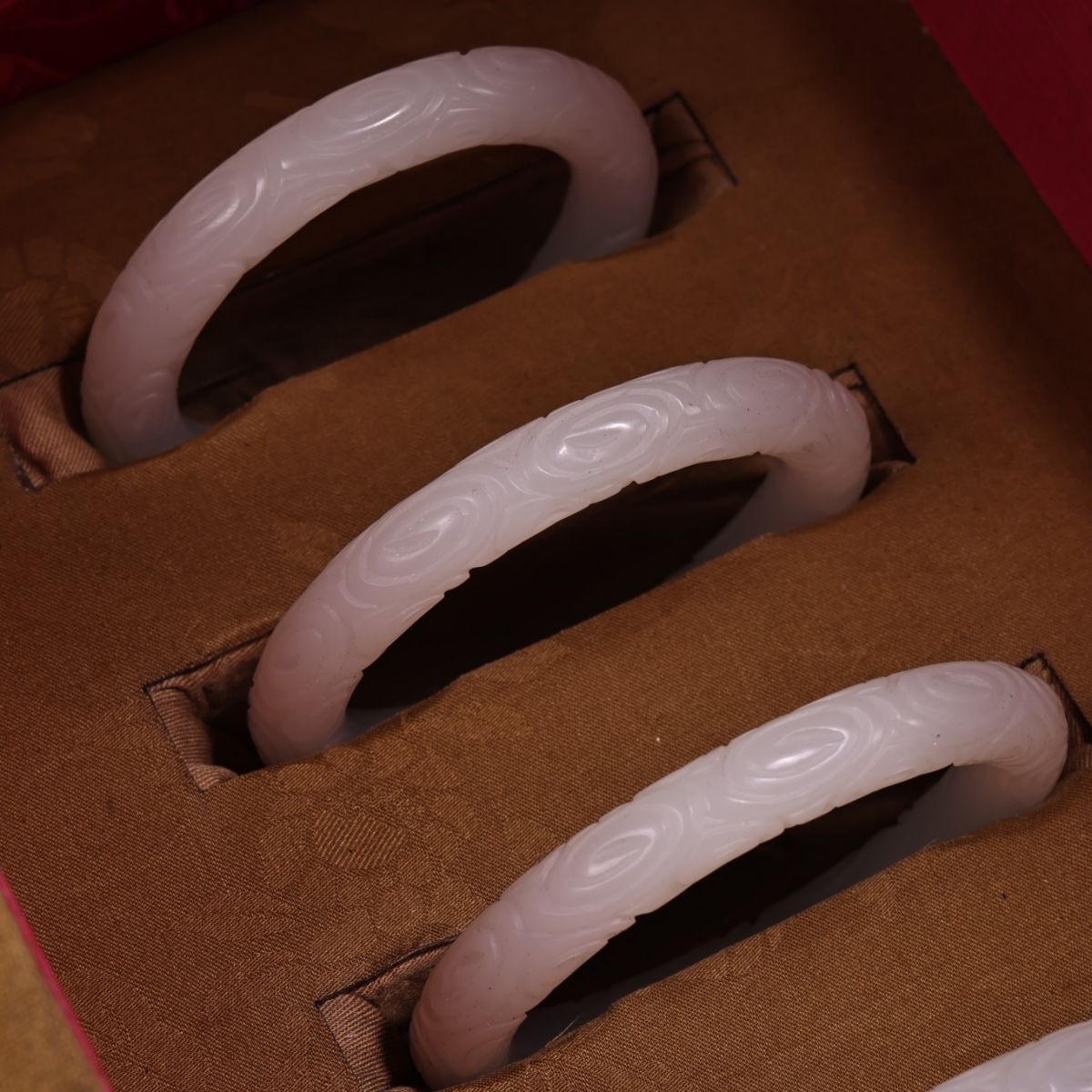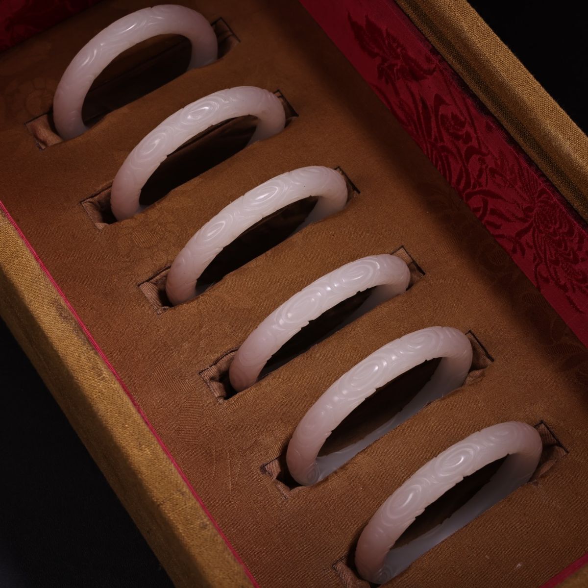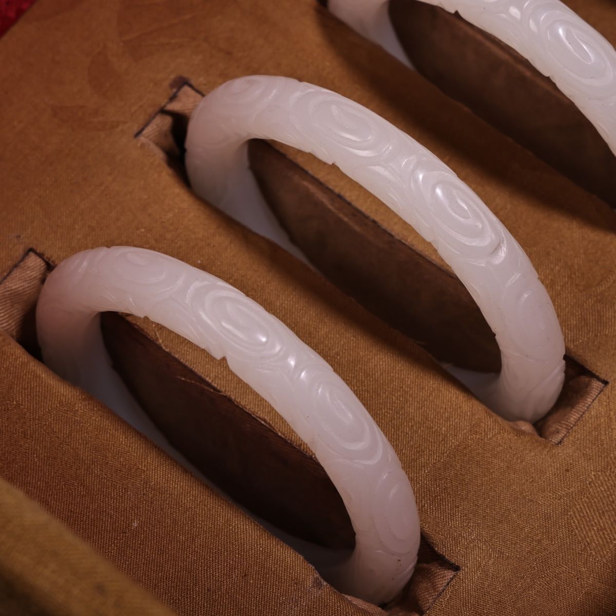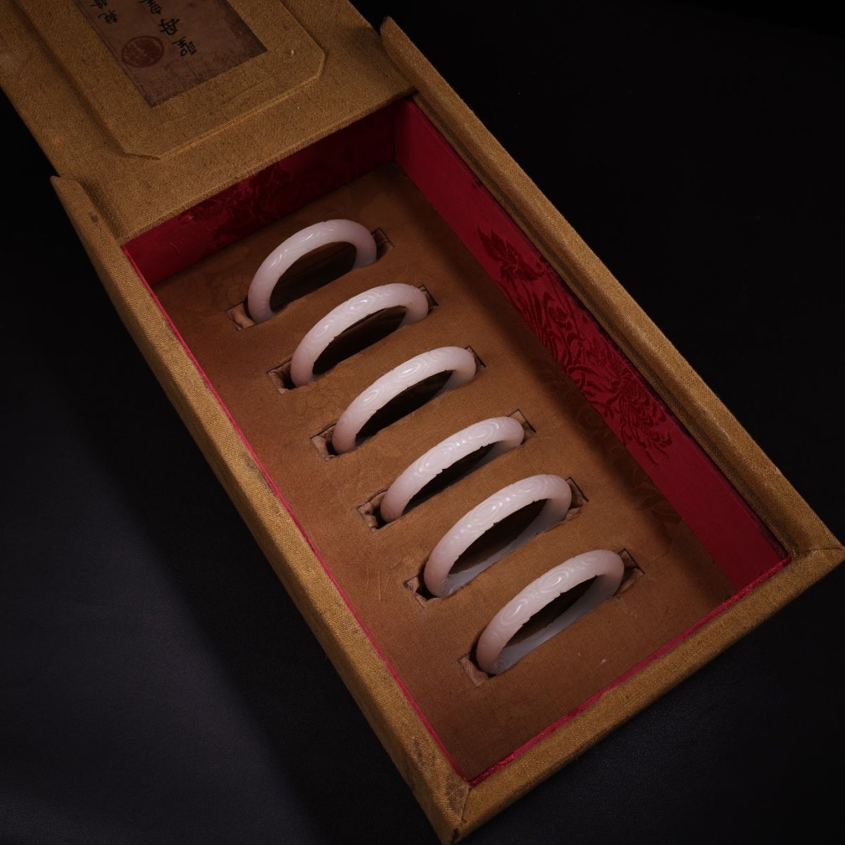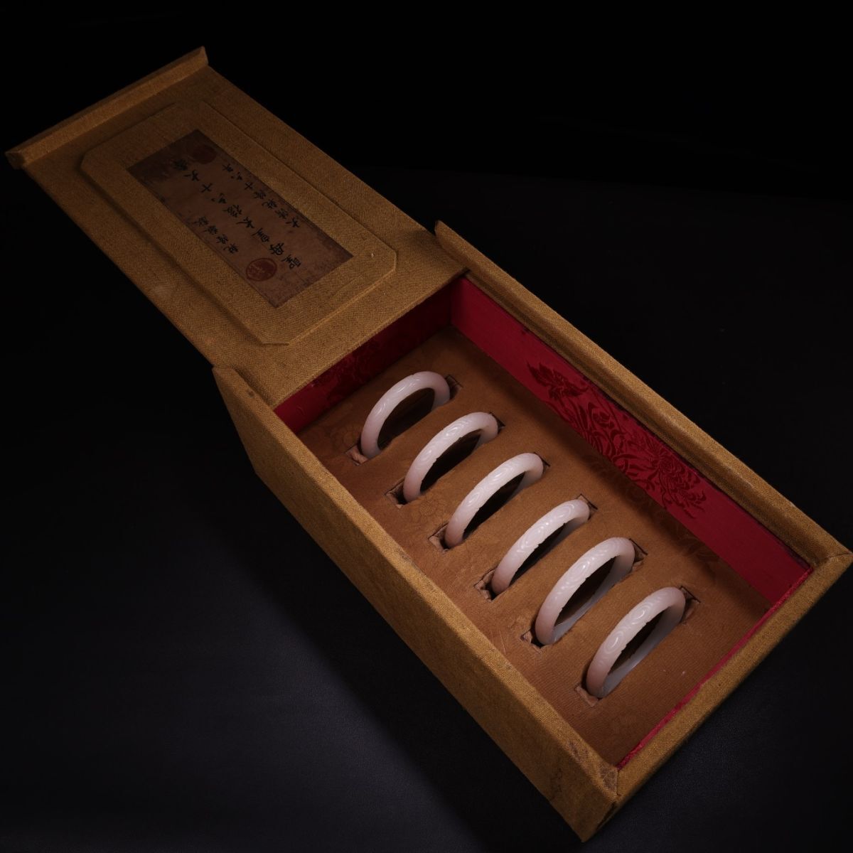 永し 清時代 大清乾隆十六年 玉石 白玉 腕輪 錦盒 極細工 裝身具 根付 置物擺件 古美術品 時代物 古董品 収集 旧家蔵出 中国唐物 A241