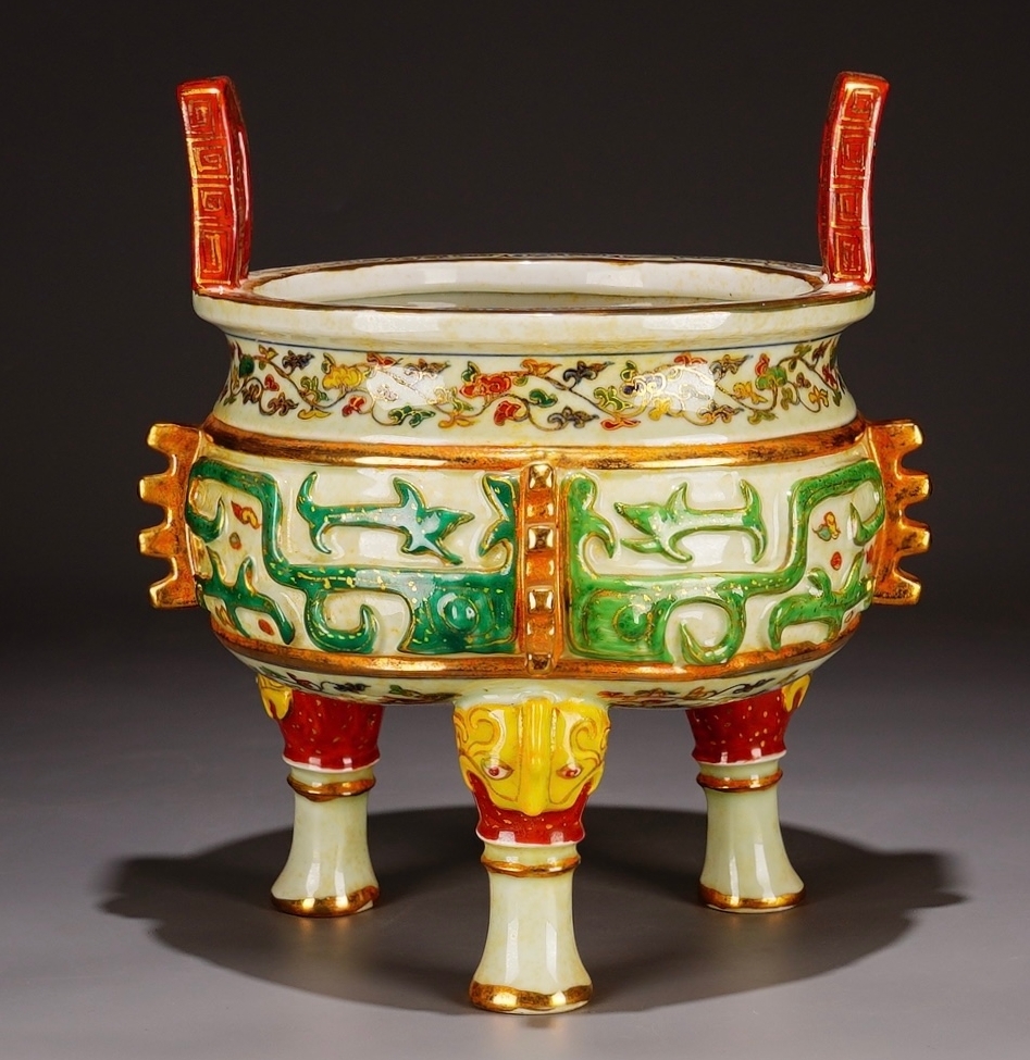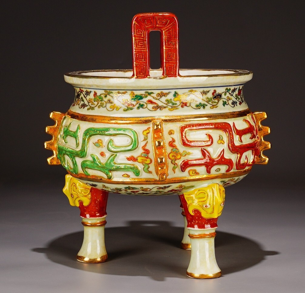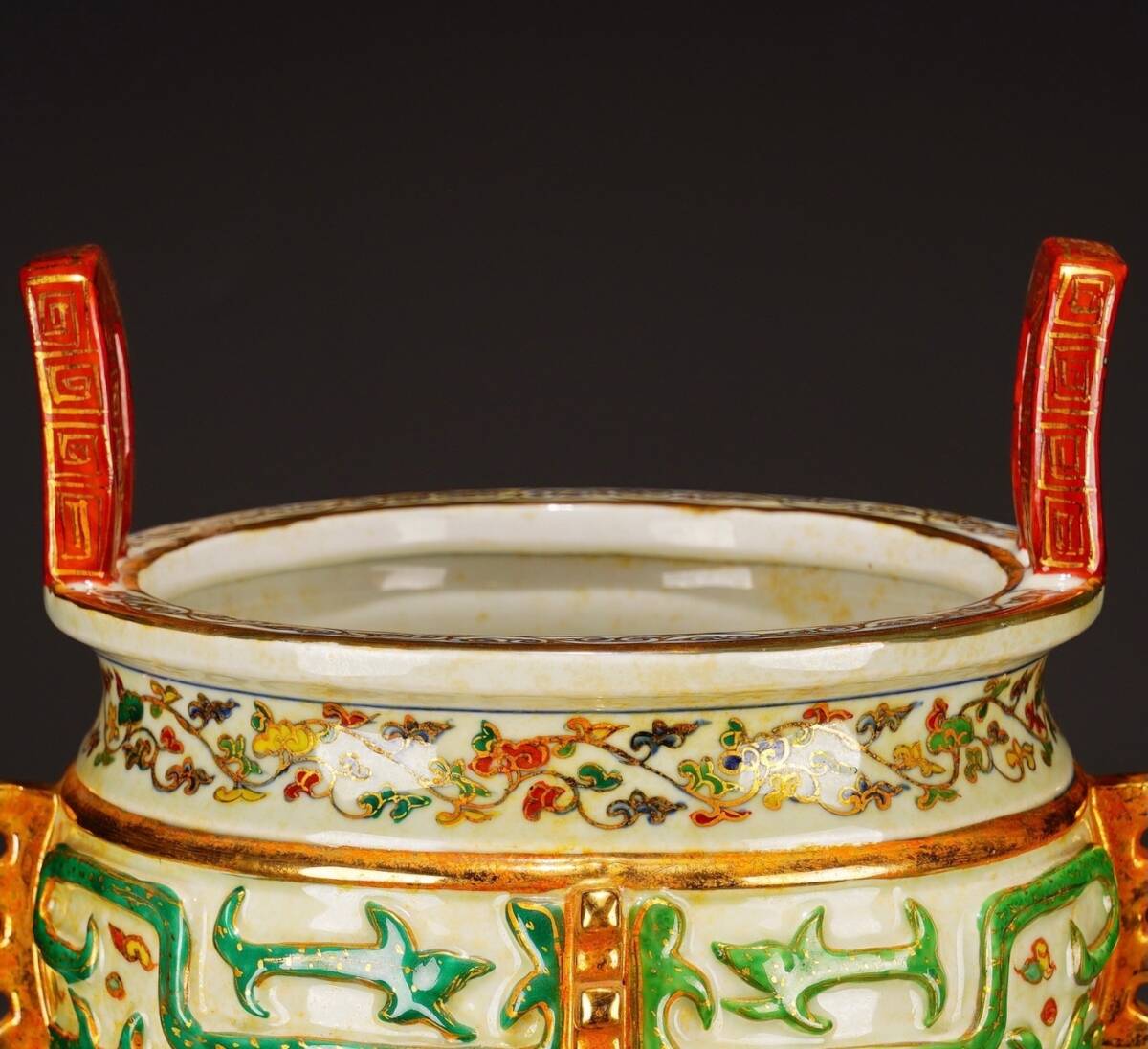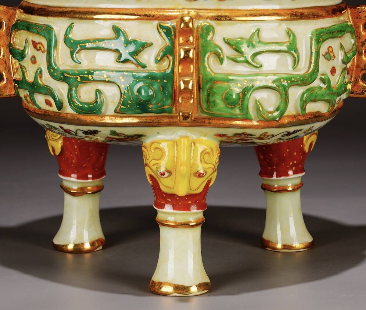 *珍品旧蔵* 明 成化年製 五彩描金 三足大鼎 陶芸 古陶磁器 中国磁器 極細工 唐物 中国古玩 骨董品 古美味 H45