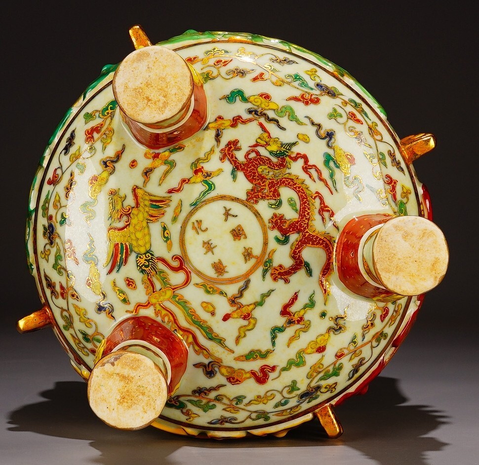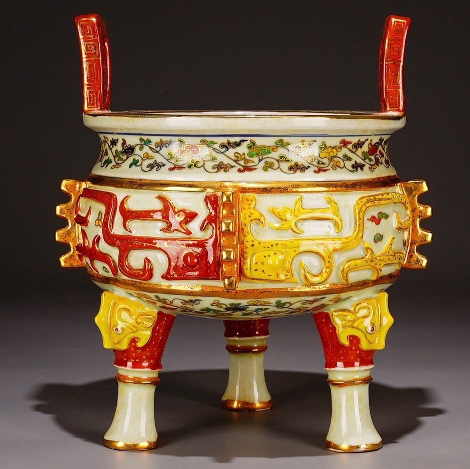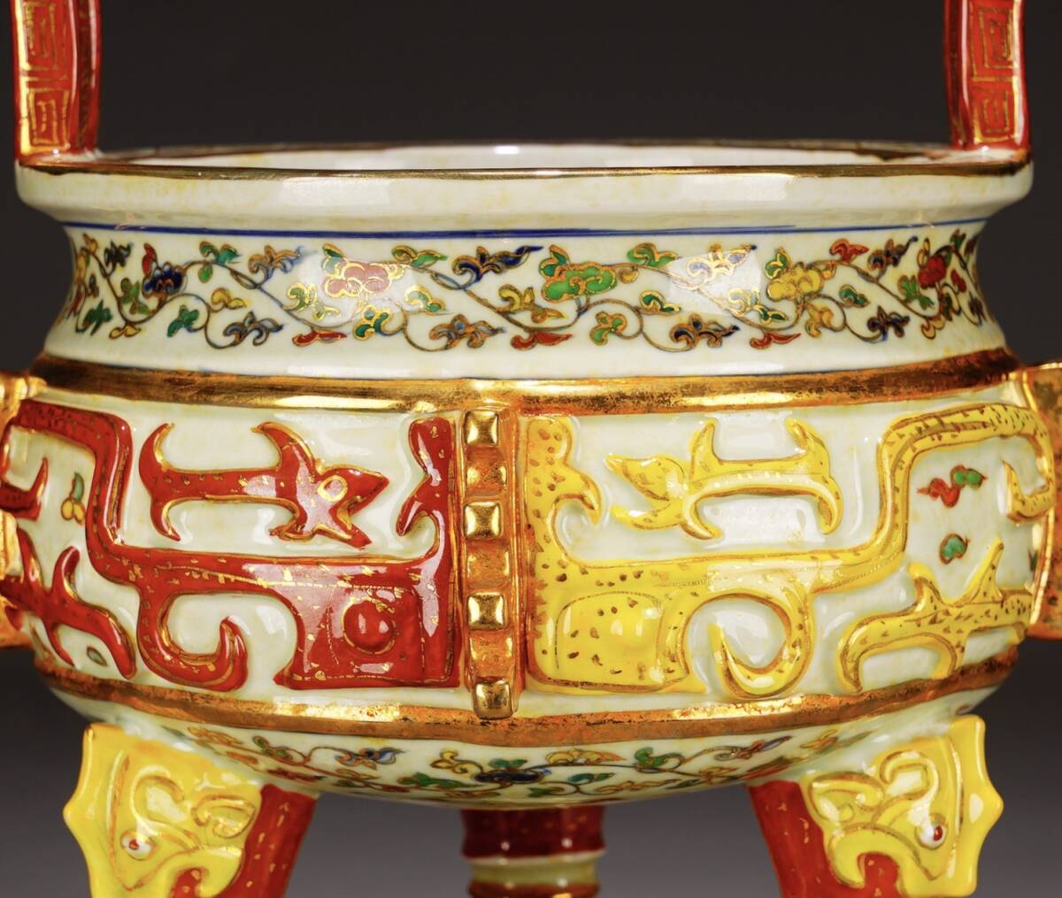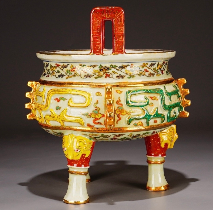 *珍品旧蔵* 明 成化年製 五彩描金 三足大鼎 陶芸 古陶磁器 中国磁器 極細工 唐物 中国古玩 骨董品 古美味 H45