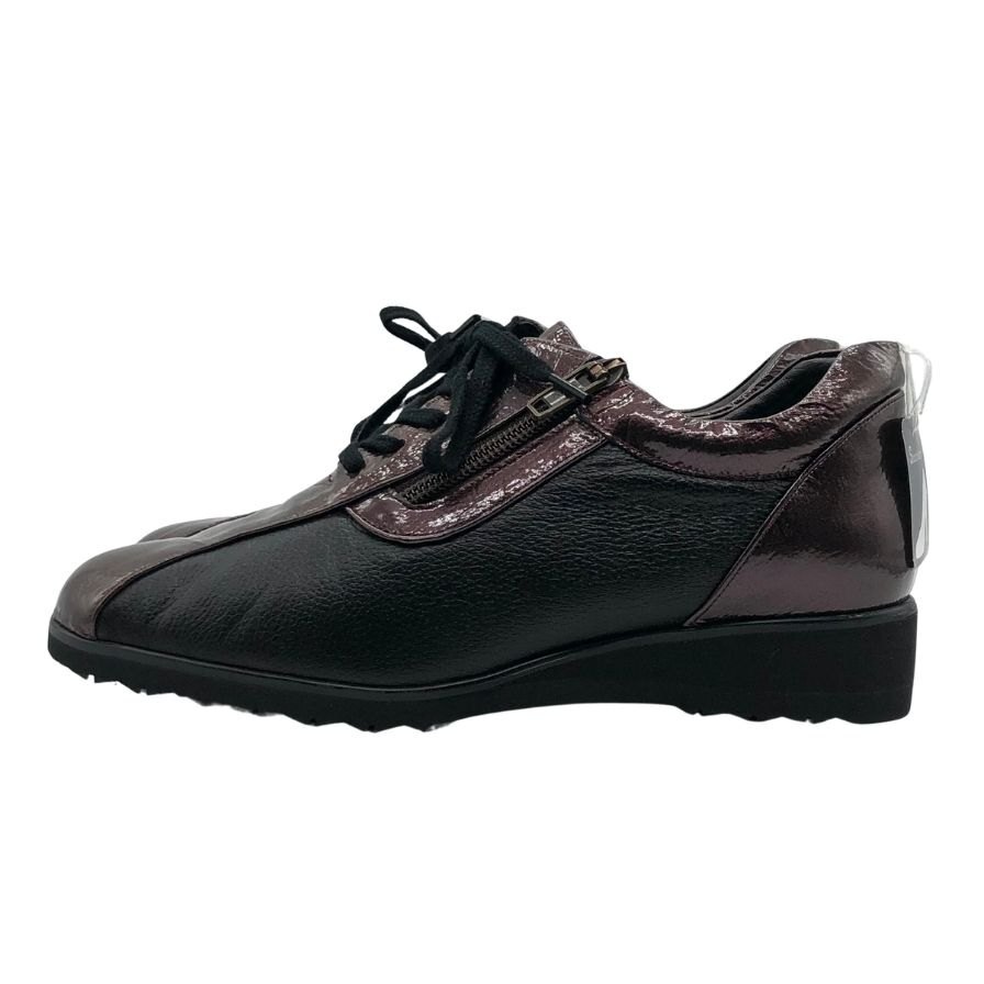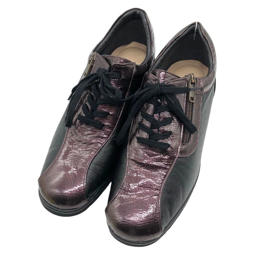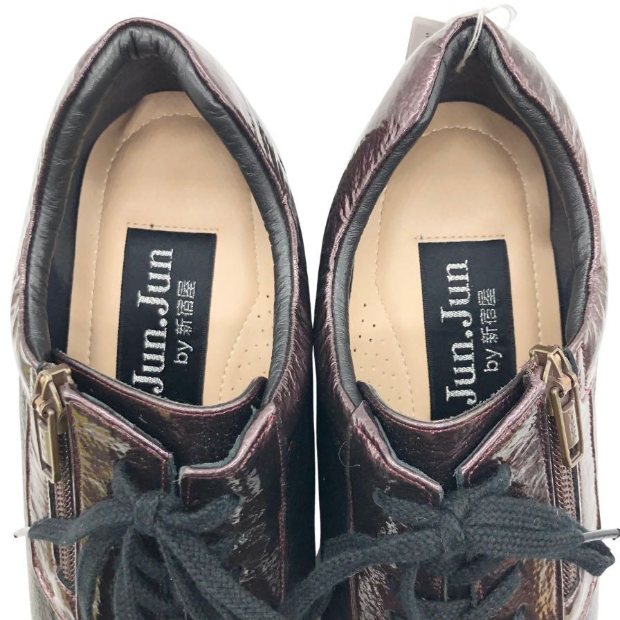 ジュンジュンバイ新宿屋 スニーカー 2210 レザー パープル ブラック ネブラ オデット 切替 22.5 Jun.Jun by shinjukuya 約22.5cm【7-18】