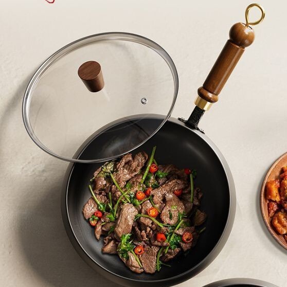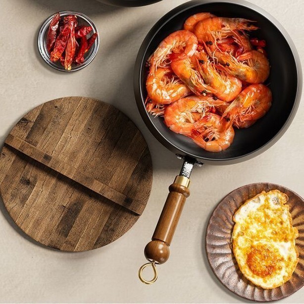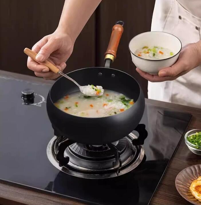 ●【優れた耐久性】絶妙な鉄素材は、耐摩耗性に優れているだけでなく、調理にも耐え、耐用年数が長い。丸い構造設計は効果的に熱を伝達し、調理効率を高めることができる。木製のハンドルの抗焦げ設計により 安全で便利な調理体験をもたらします。