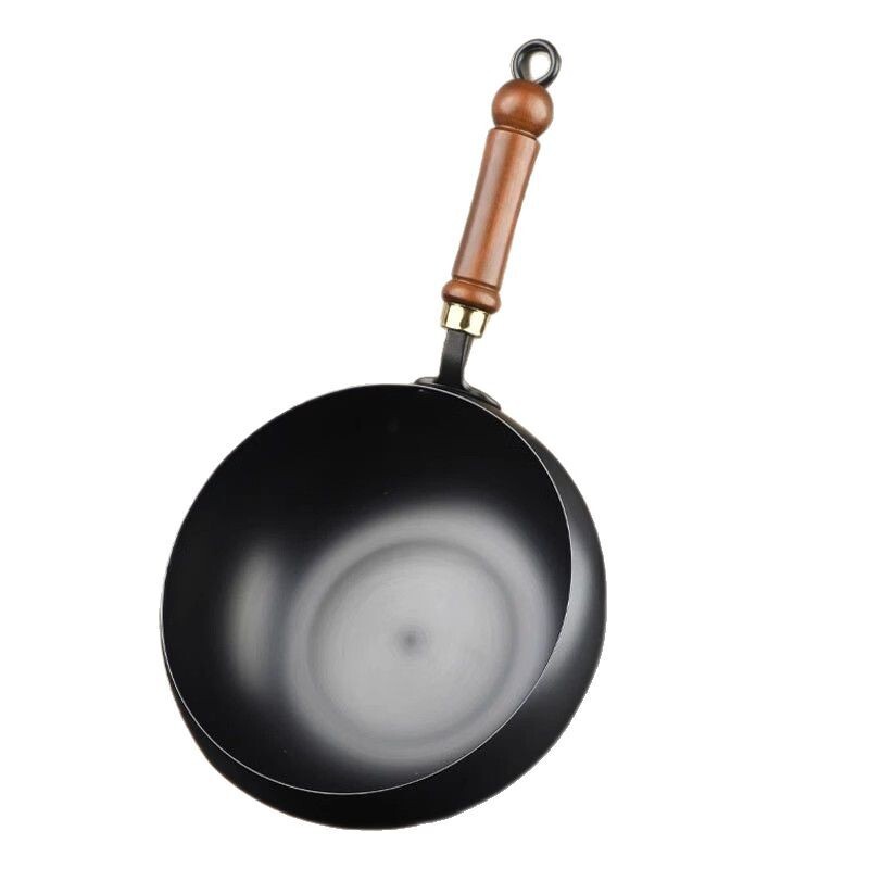 上質24cm蓋なし 鉄製中華鍋 鉄フライパン 焦げ付かない 伝統鉄鍋 焦げ付き防止 軽量設計 省エネガス代節約 錆びない仕様 ガスIH対応