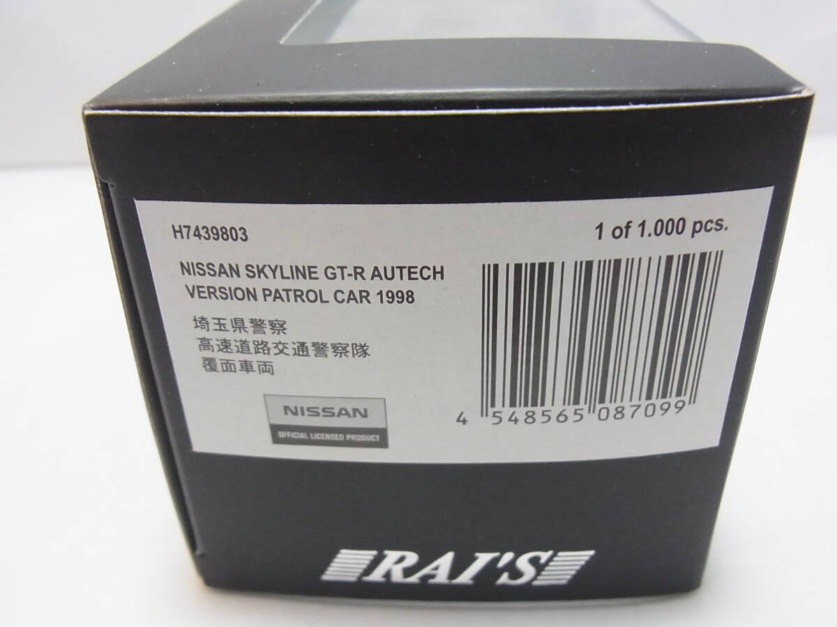 レイズ RAI'S 1/43 日産 スカイライン GT-R AUTECH VERSION 1998 埼玉県警察 高速道路交通警察隊 覆面車両 NISSAN SKYLINE