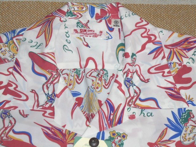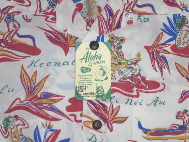 25 東洋 サンサーフ SS39411 105 オフホワイト S 半袖 アロハ シャツ SUN SURF HAWAIIAN HULA