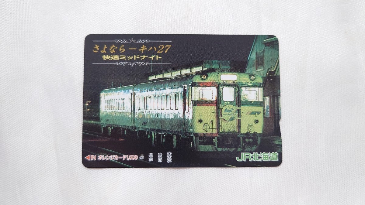 ▼JR北海道▼さよならキハ27 快速ミッドナイト▼記念オレンジカード1穴使用済み