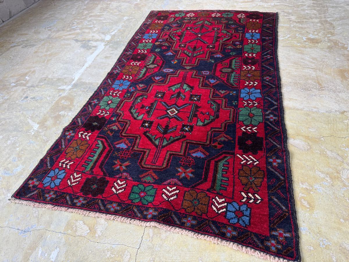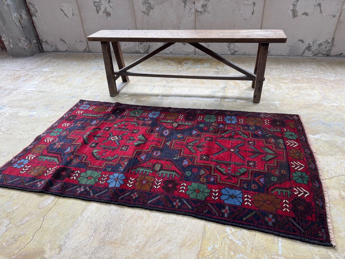 ¥25,000→¥16,000 トライバルラグ ヴィンテージ家具 148×83cm 手織り 絨毯 カーペット ヴィンテージ ラグ ペルシャ絨毯