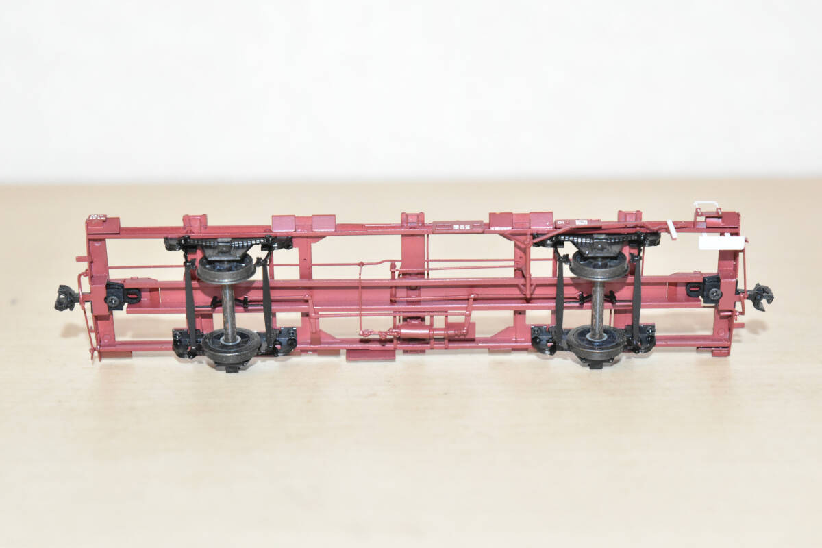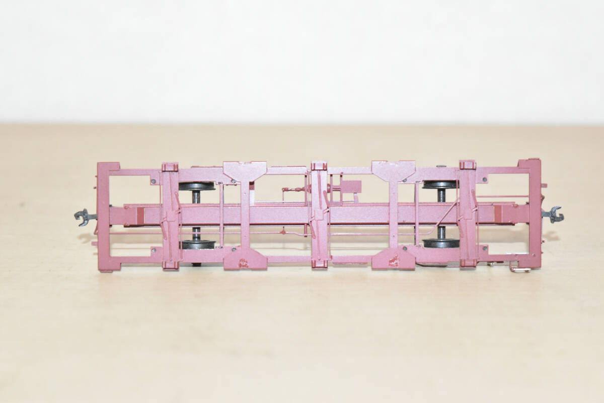 実車が極限までスリム化された軽量貨車だったため部材が細いのですが、見事に貧弱に見えるフレームを再現しています。