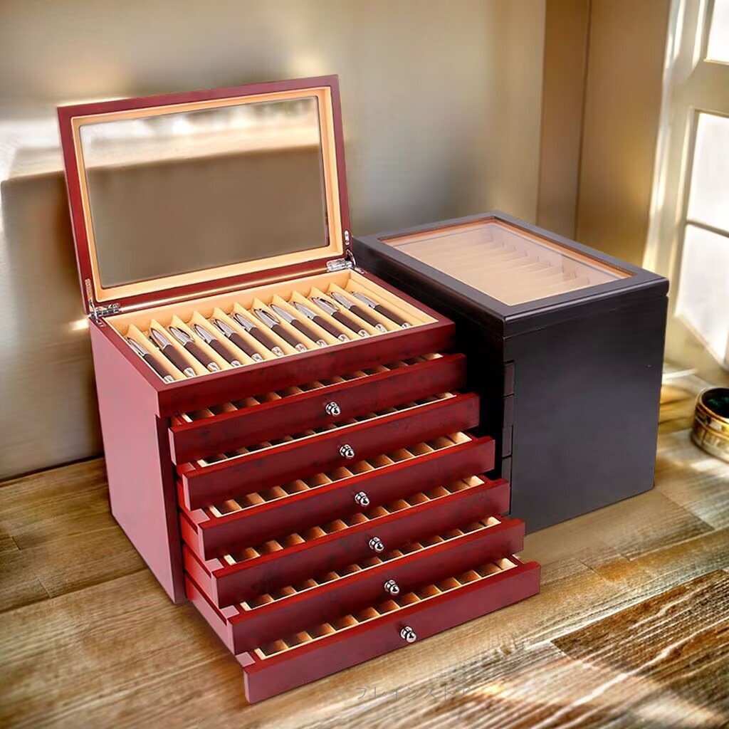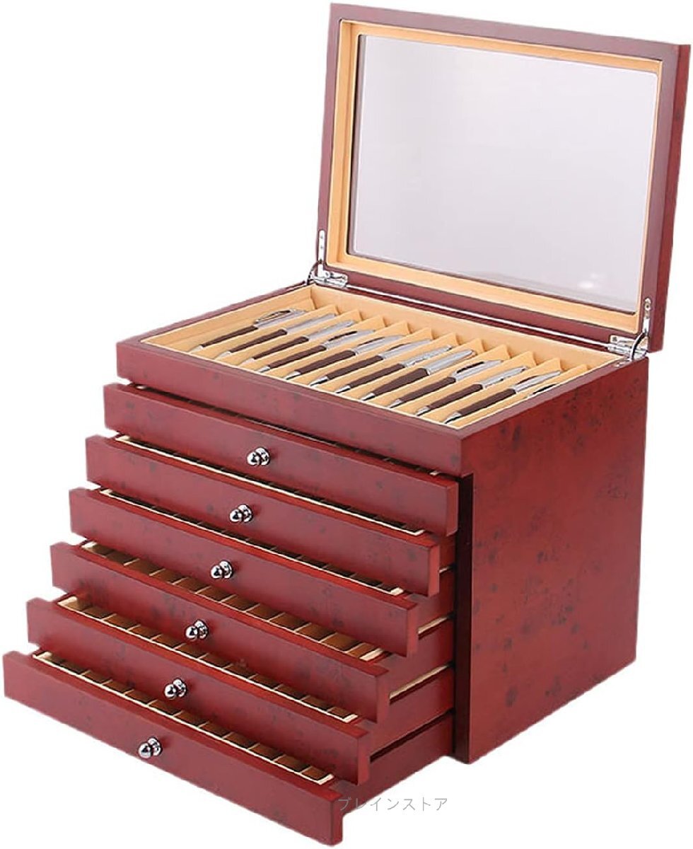 7層78スロット万年筆ディスプレイボックスオーガナイザー木製収納コレクショントレイ引き出しケースペンホルダーガラス窓蓋付き