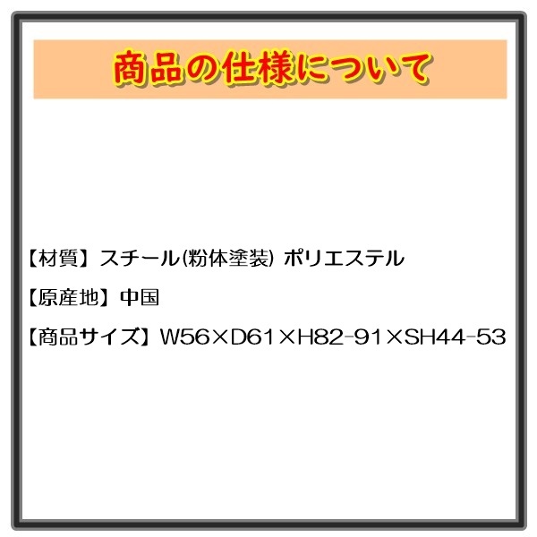 ![]() デスクチェア DKC-79 ブラック 商品の仕様について 【材質】スチール(粉体塗装) ポリエステル 【原産地】中国 【商品サイズ】W56×D61×H82-91×SH44-53 ◇◆発送について◆◇