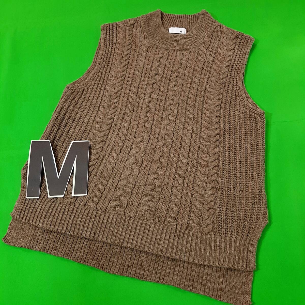 r8送料無料★セミハイネック 丸首 リブ ニットベスト★レディースMサイズ モカベージュ―色