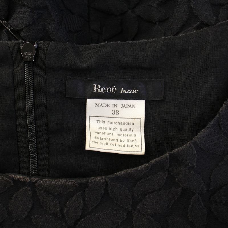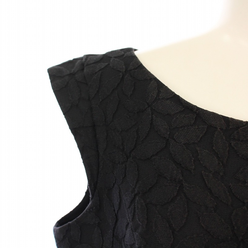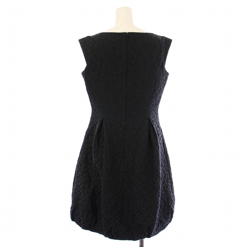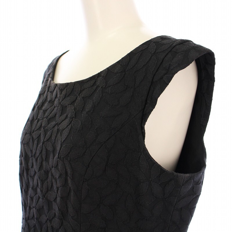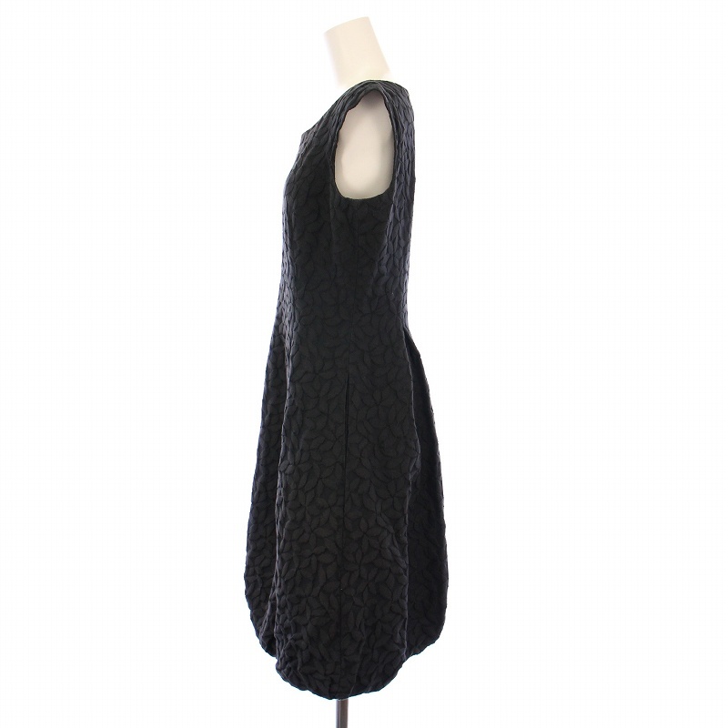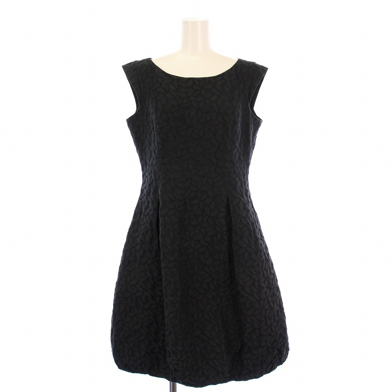 ルネ Rene フレアワンピース ひざ丈 ノースリーブ 総柄 38 黒 ブラック /BB レディース