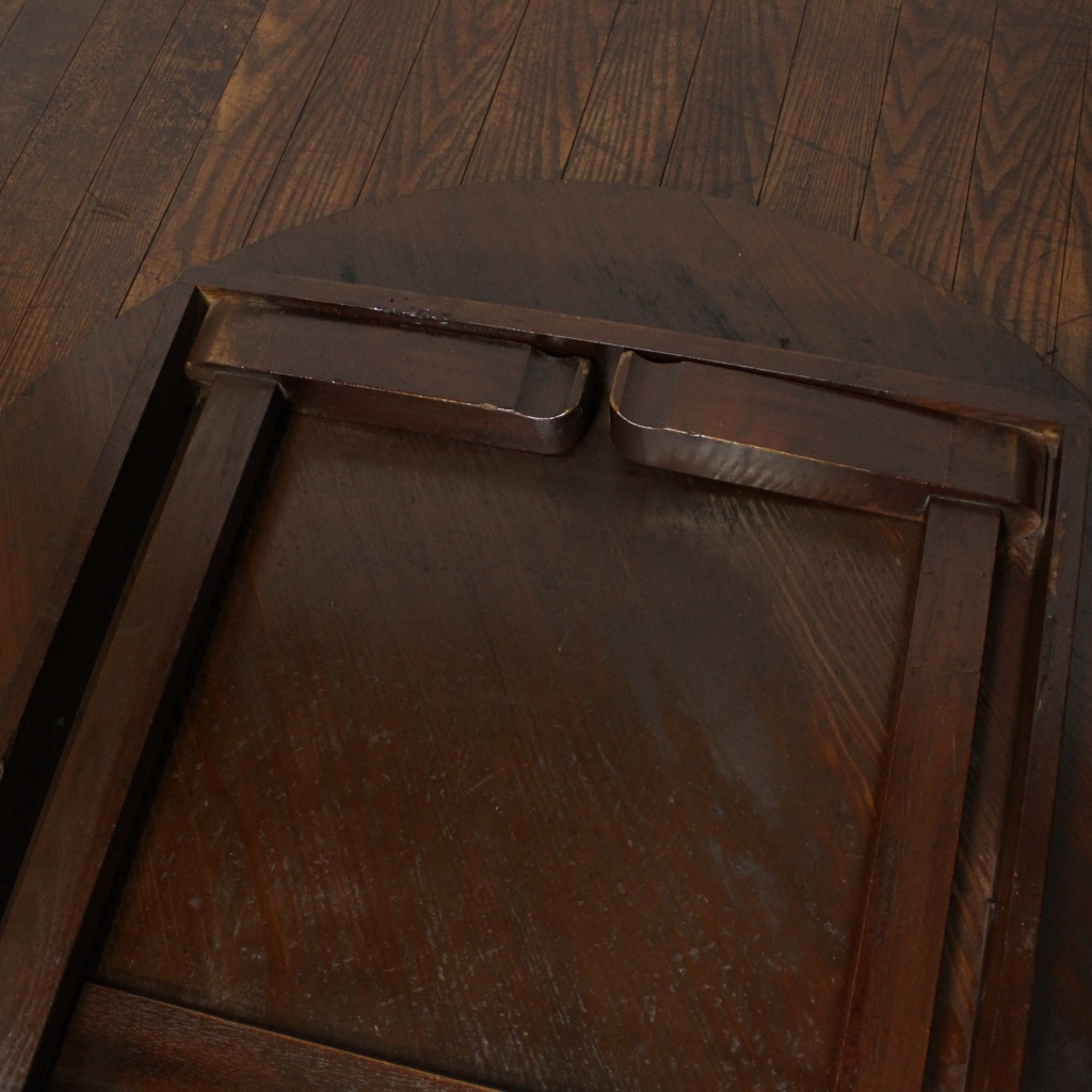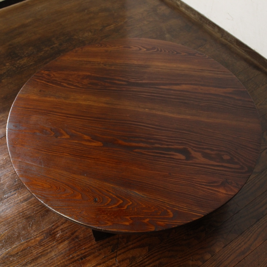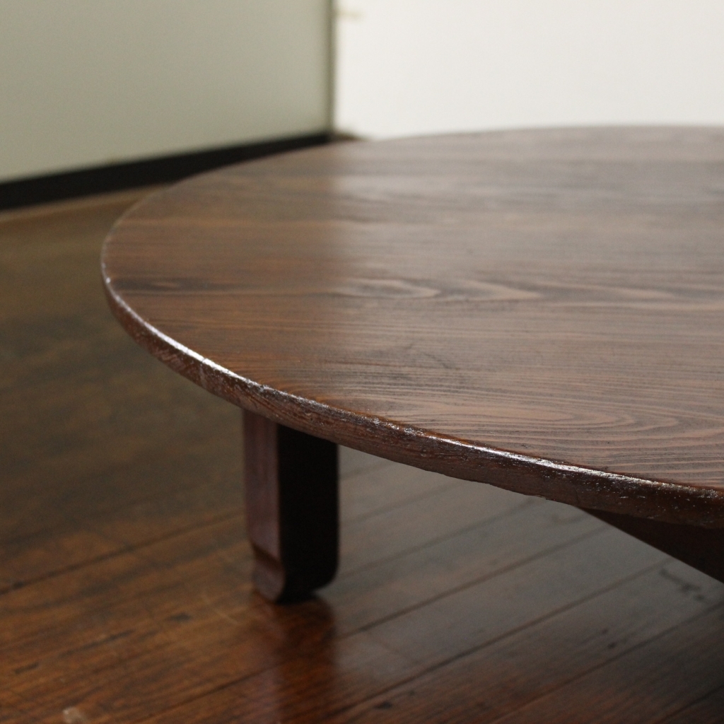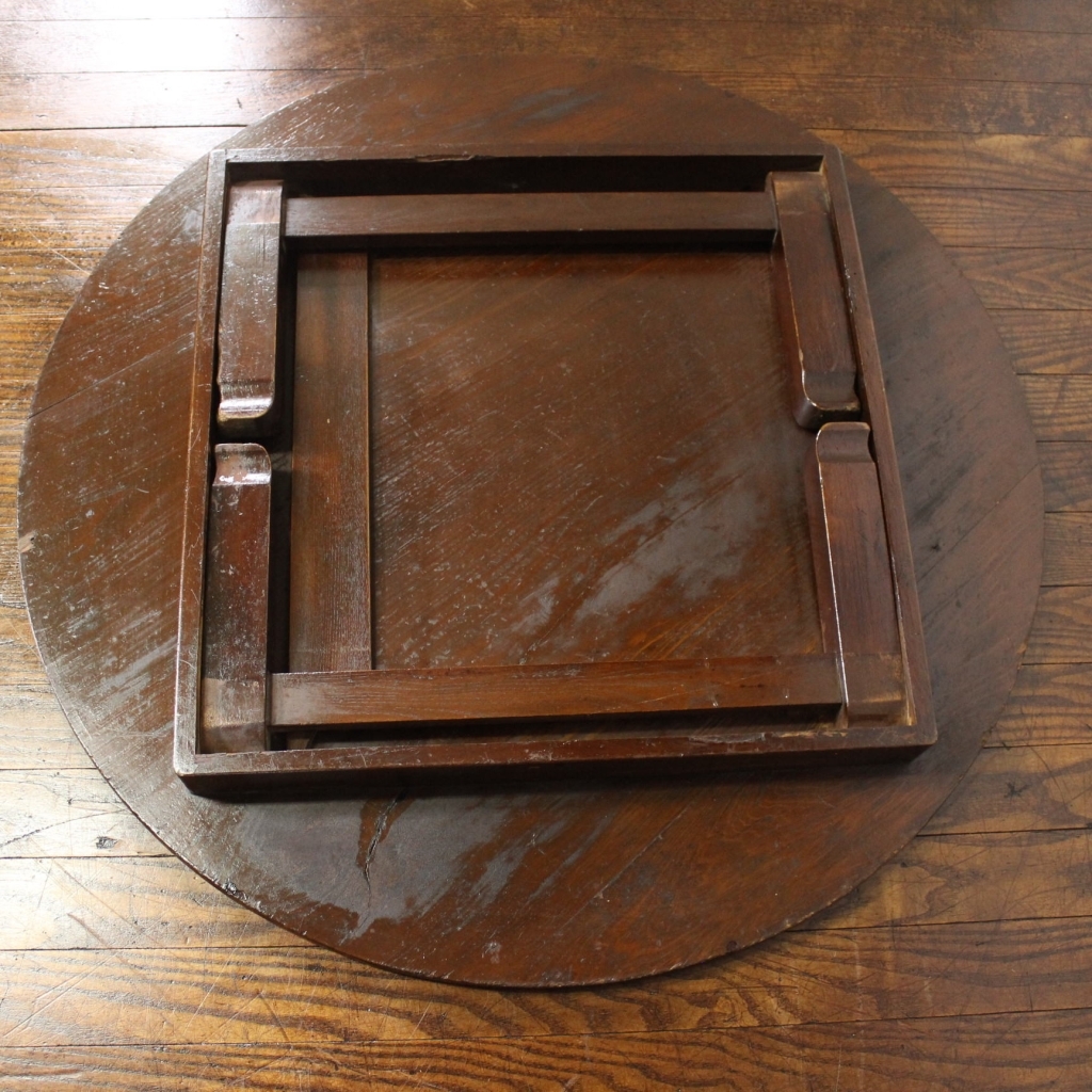 | 商品紹介 | 古い丸ちゃぶ台です。 古い質感がいい感じで、レトロな味わい深い一品です。 天板は栓材、鮮やかな杢模様が素敵です。 折りたたみがきくので収納に重宝します。 使いやすいサイズで実用性抜群、レトロ系アイテムとしてオススメです。 |