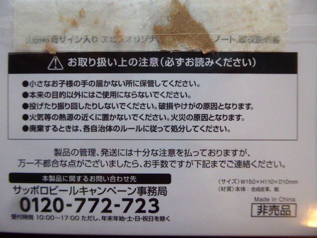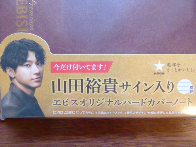 値下げ!新品★山田裕貴サイン入り エビスオリジナルハードカバーノート 2冊 非売品 + 紙袋