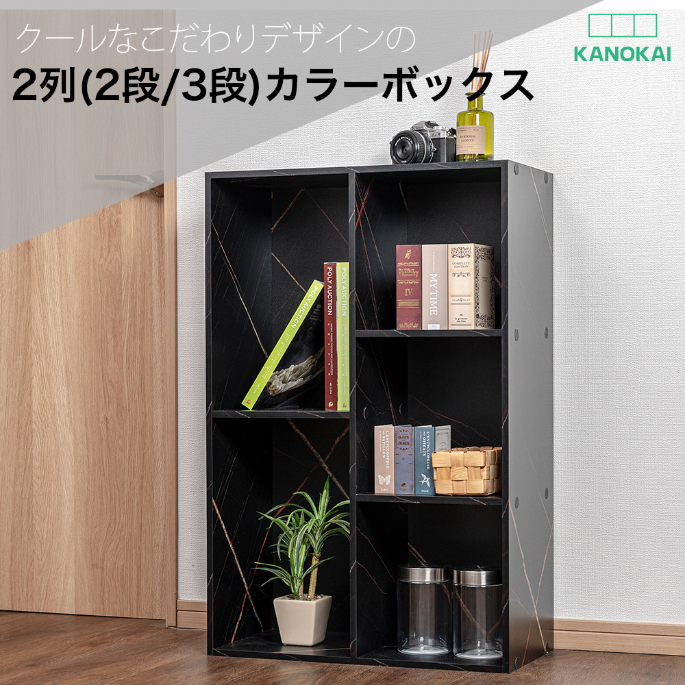 カラーボックス2列5段 本棚 A4 2個セット(大理石ブラック)5段 大理石 2
