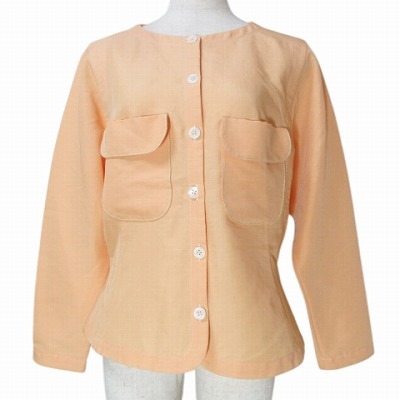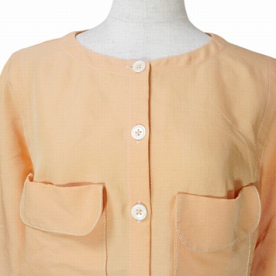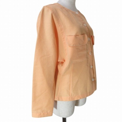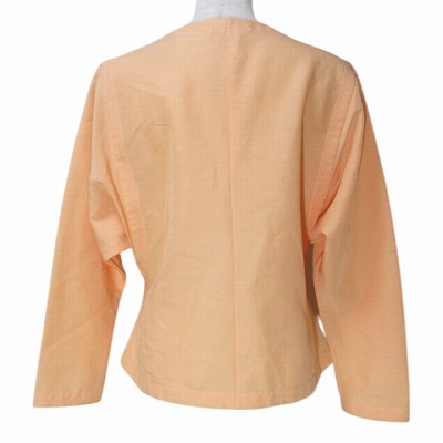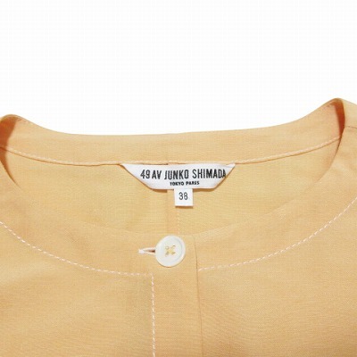 49アベニュー ジュンコシマダ 美品 ノーカラーブラウス シャツ 長袖 リネン混 ネップ ドルマンスリーブ 38 M相当 オレンジ X レディース