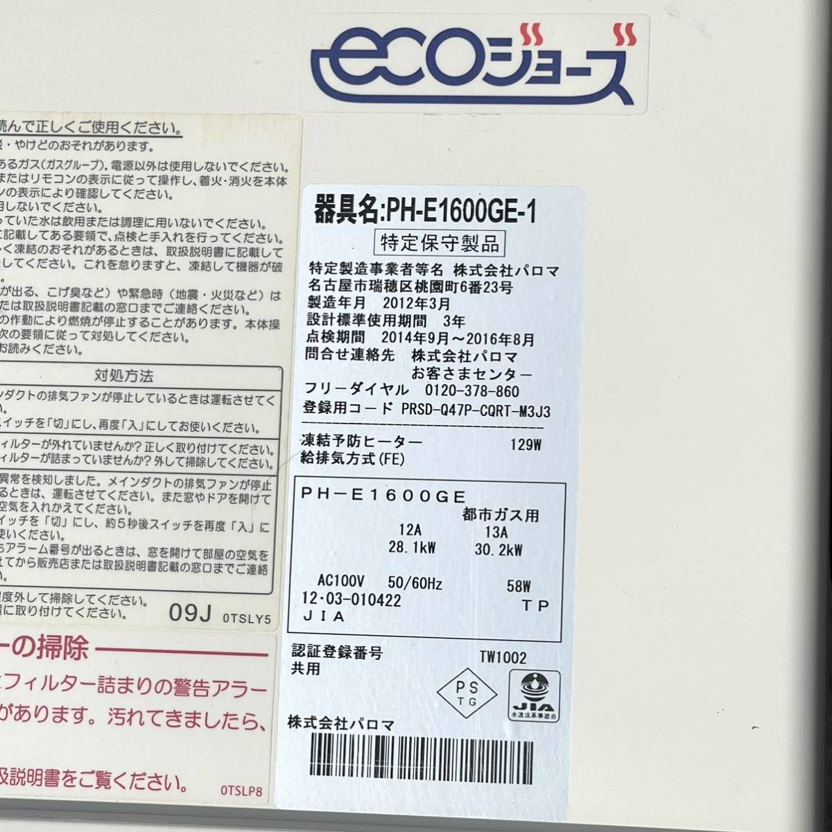 ★☆業務用/厨房用品 Paloma/パロマ ガス給湯器 PH-E1600GE-1 都市ガス 2012年製 現状渡し/※説明文必読☆★
