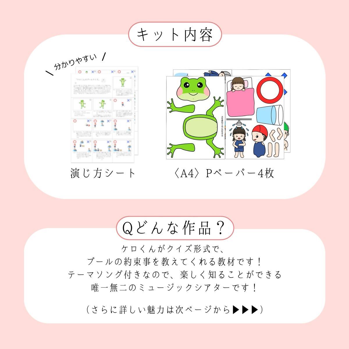 #保育教材 #パネルシアター #ペープサート #スケッチブックシアター #マグネットシアター #部分実習 #手袋シアター #製作 #壁面 #カエル #プールのお約束 #プール