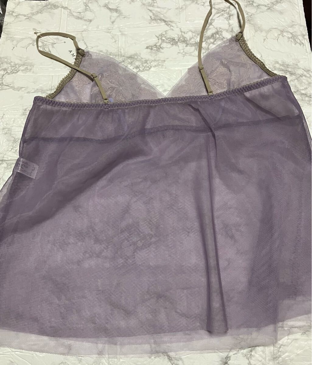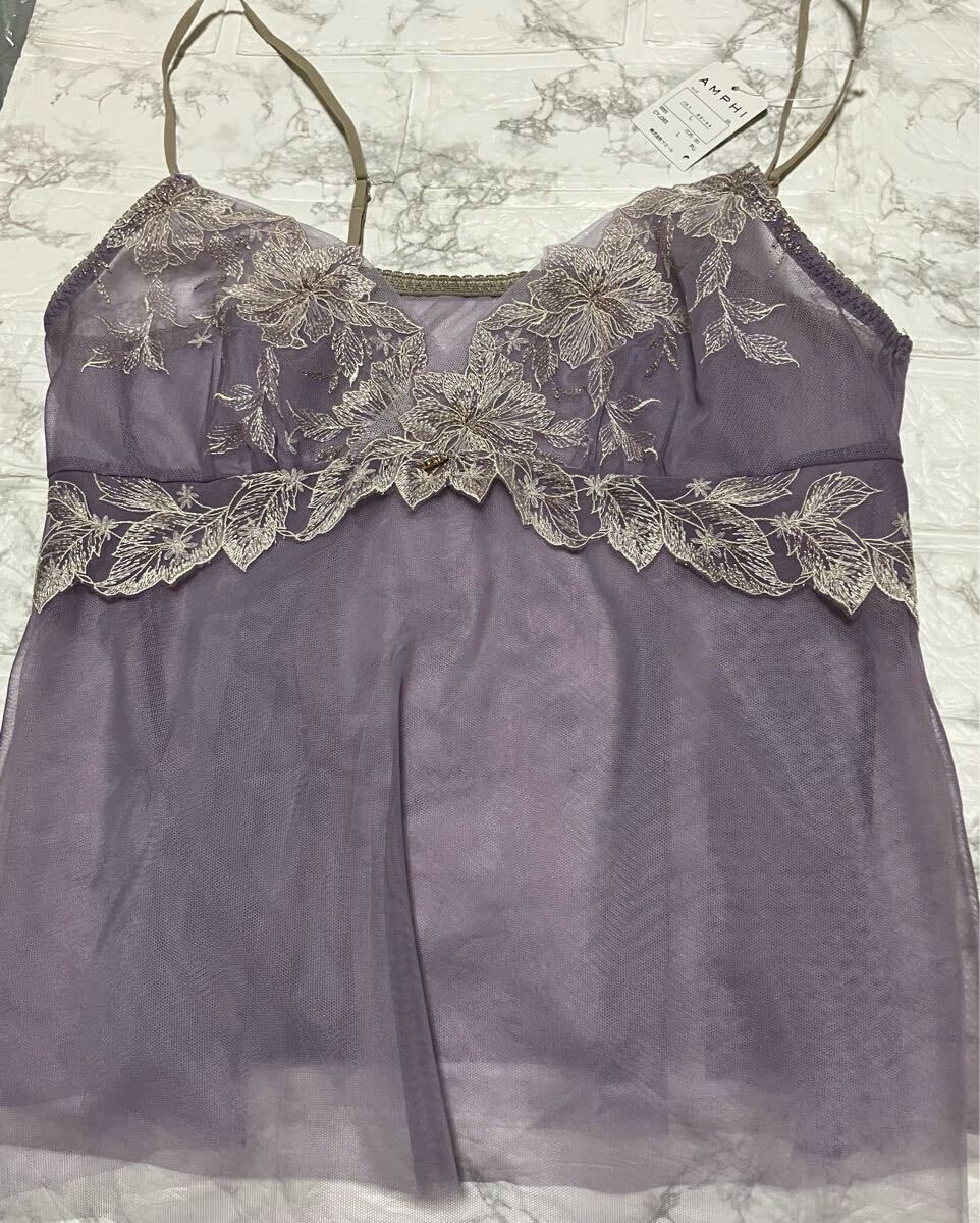 カップにエンブロイダリーレースとチュールを重ねたキャミソール。