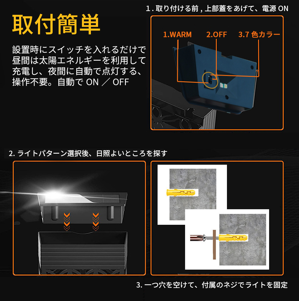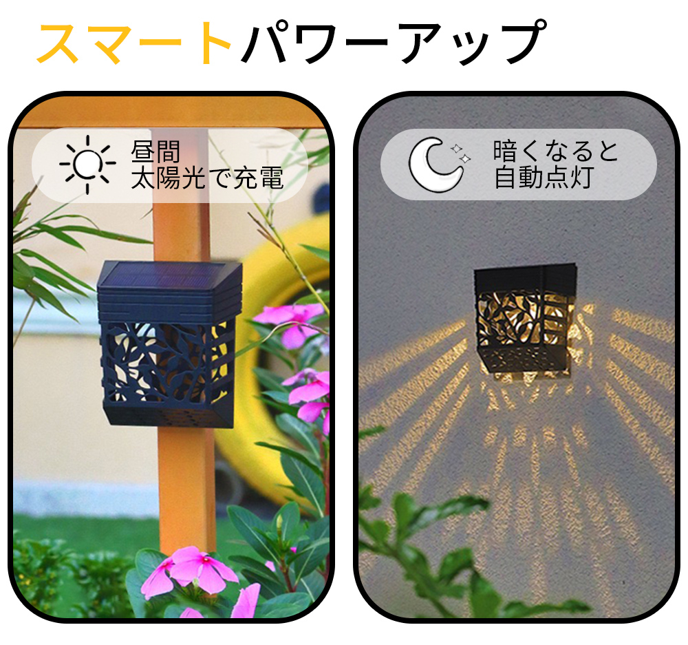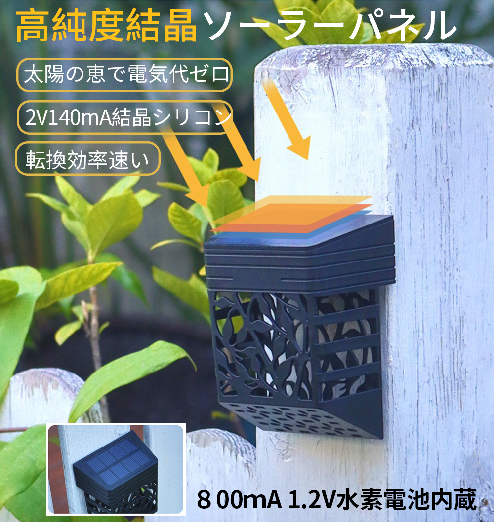 【自動点灯 消灯】昼間はソーラーエネルギーで自動充電、夜間は暗くなると自動点灯