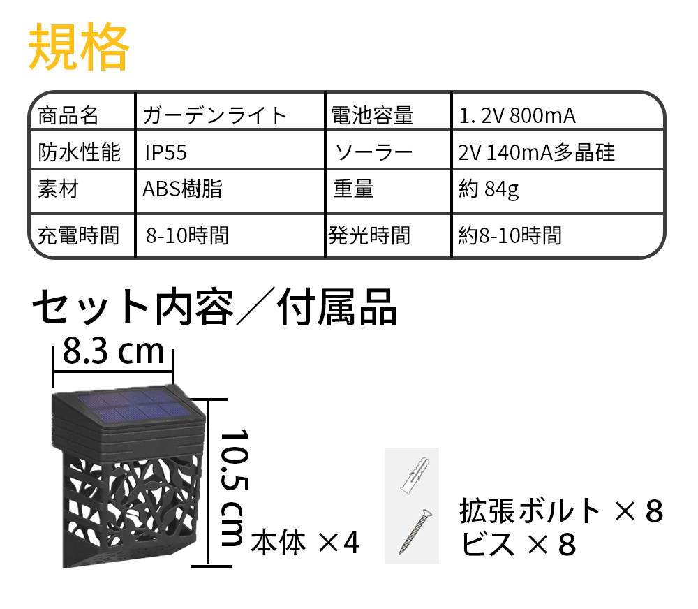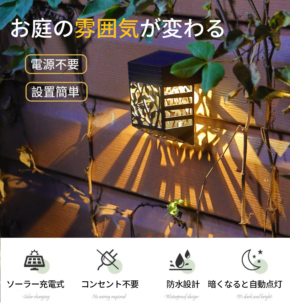 4個セット SL-04 ガーデンソーラーライト 壁掛け式 屋外防水 壁掛けソーラーライトled 電球色RGB色選べる2タイプ おしゃれ