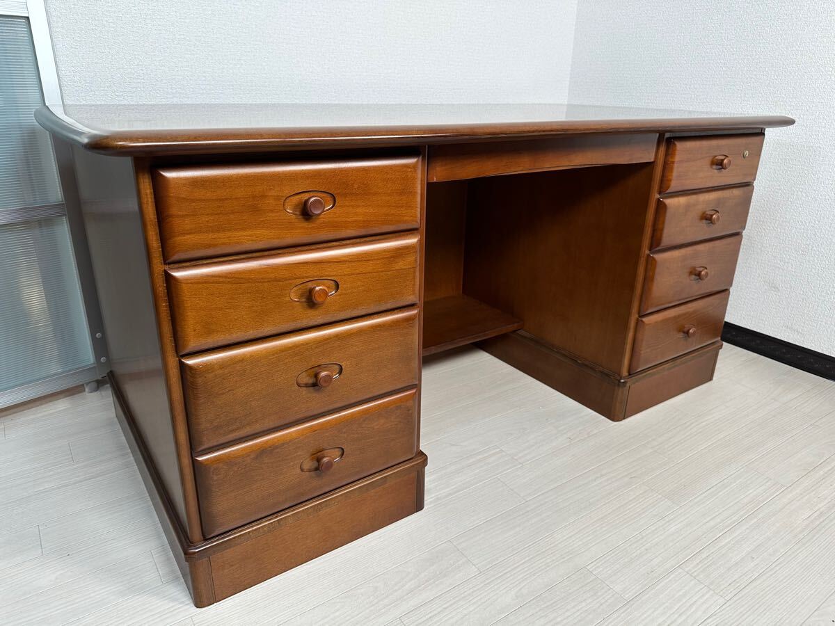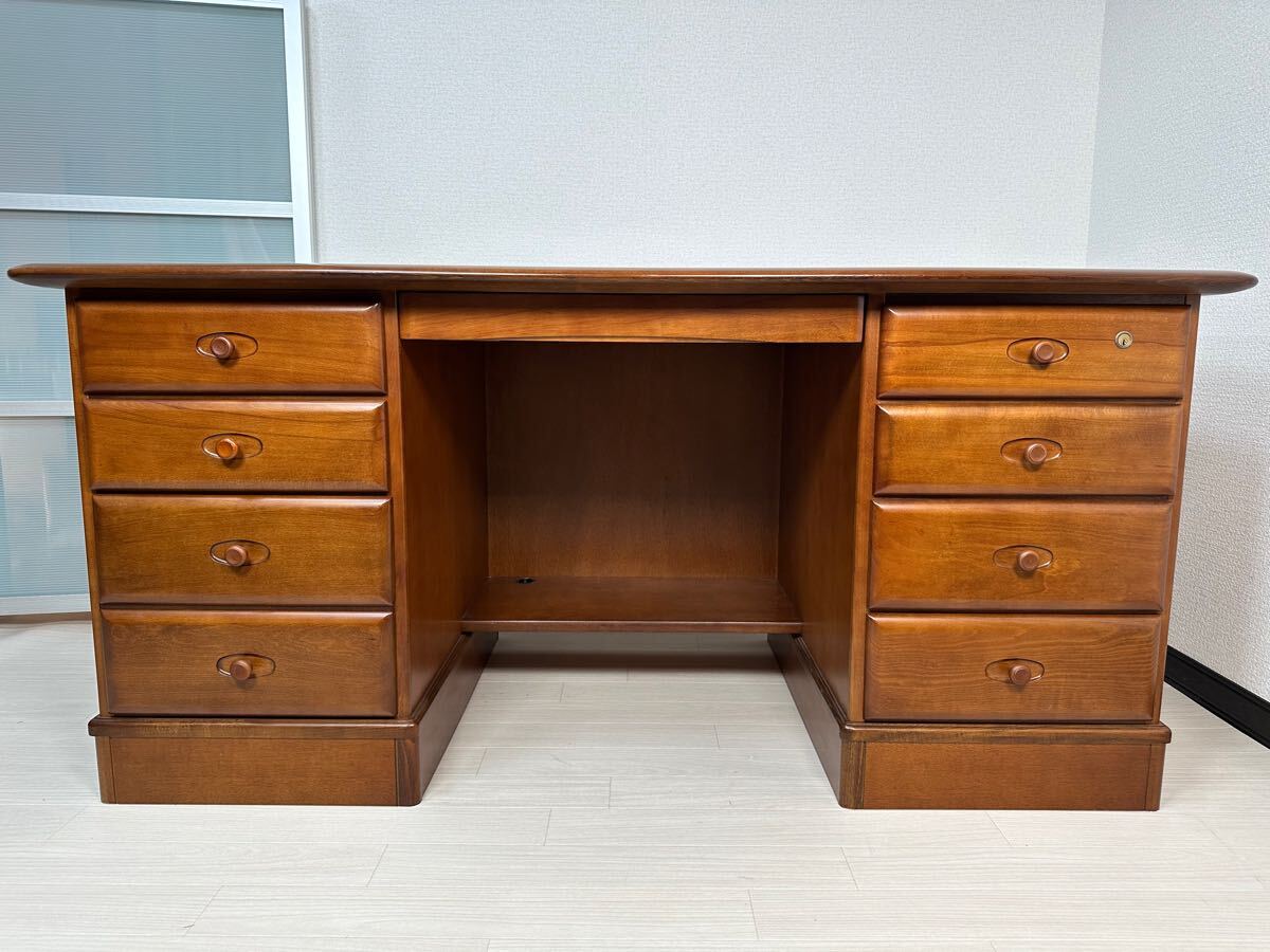 【家財便Eランク】展示品 karimoku カリモク 両袖デスク 書斎机 勉強机 プレジデントデスク 社長机 重役机 木製 役員机 オールドカリモク 極美品 国産家具 管理No.※i1※