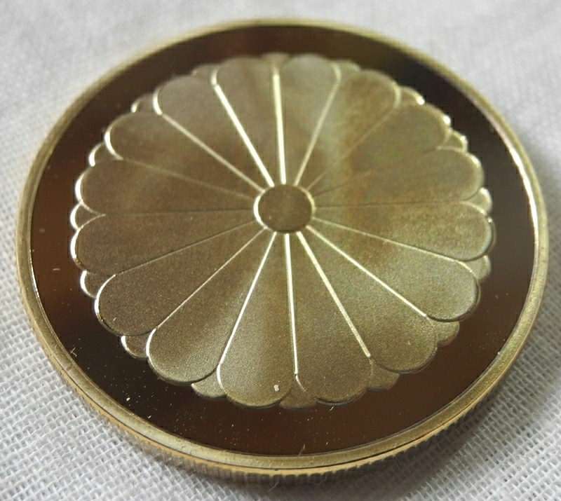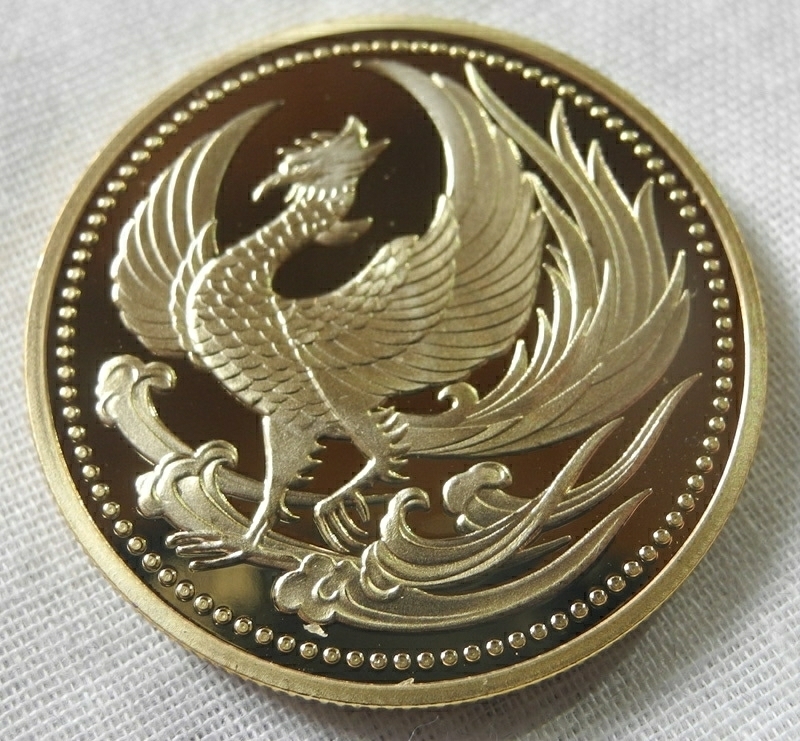 菊の御紋と鳳凰が描かれた24金メッキメダル、コインです。1oz。ケース付き。