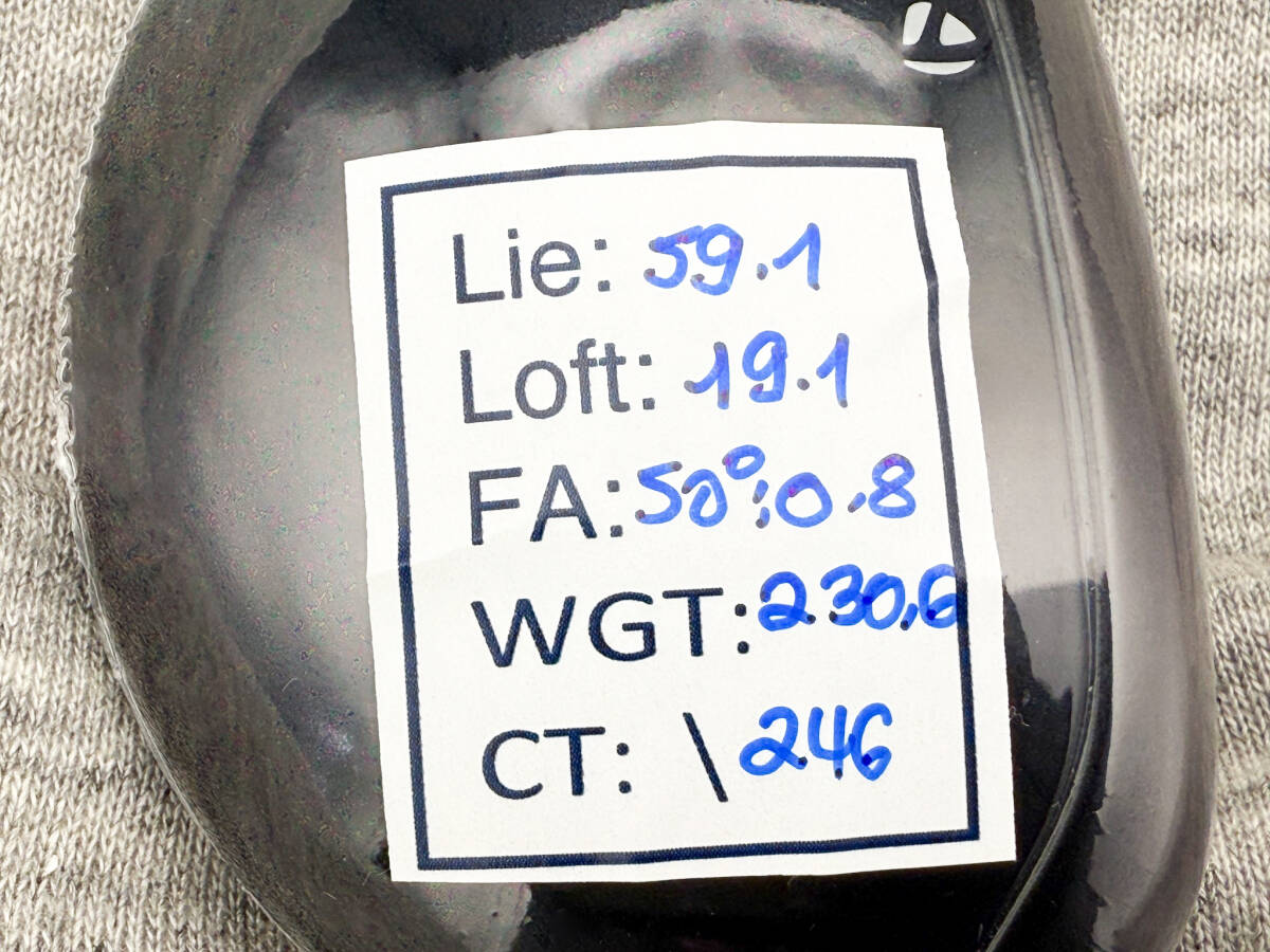 CT 246 ロフト19°表記(リアルロフト19.1°) ライ角 59.1° F.A(フェースアングル)0.8°OPEN (ほんの少し右向き、ほぼスクエア、ライ角 50°で計測)