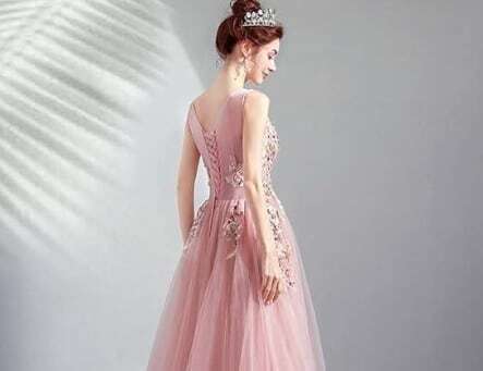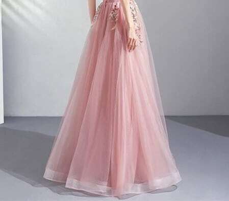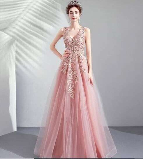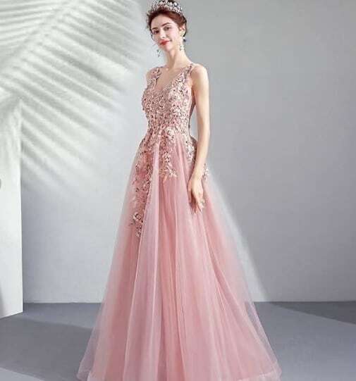 エレガントチュ-ルパーティドレス。胸元からウエストにかけての立体刺繍とフェイクパールが豪華でセレブリティ-な雰囲気を醸し出しています。ピンクのサテン地の上に同色のチュールを配し、ゴージャスでボリューム感のある華やかな印象です。結婚式の二次会、パーティやコンサートにと、晴れやかなシーンにふさわしい一着です。背中編み紐掛け。腰下ファスナー有。胸パット付き。