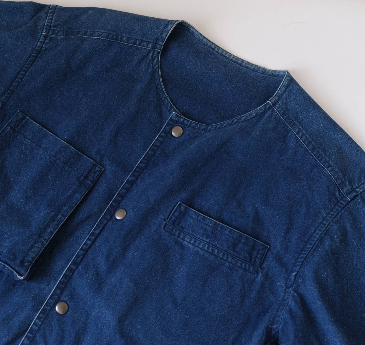 80s【 JUN MEN 】ジュンメン インディゴ染め ノーカラー スナップ 半袖 ジャケットです。