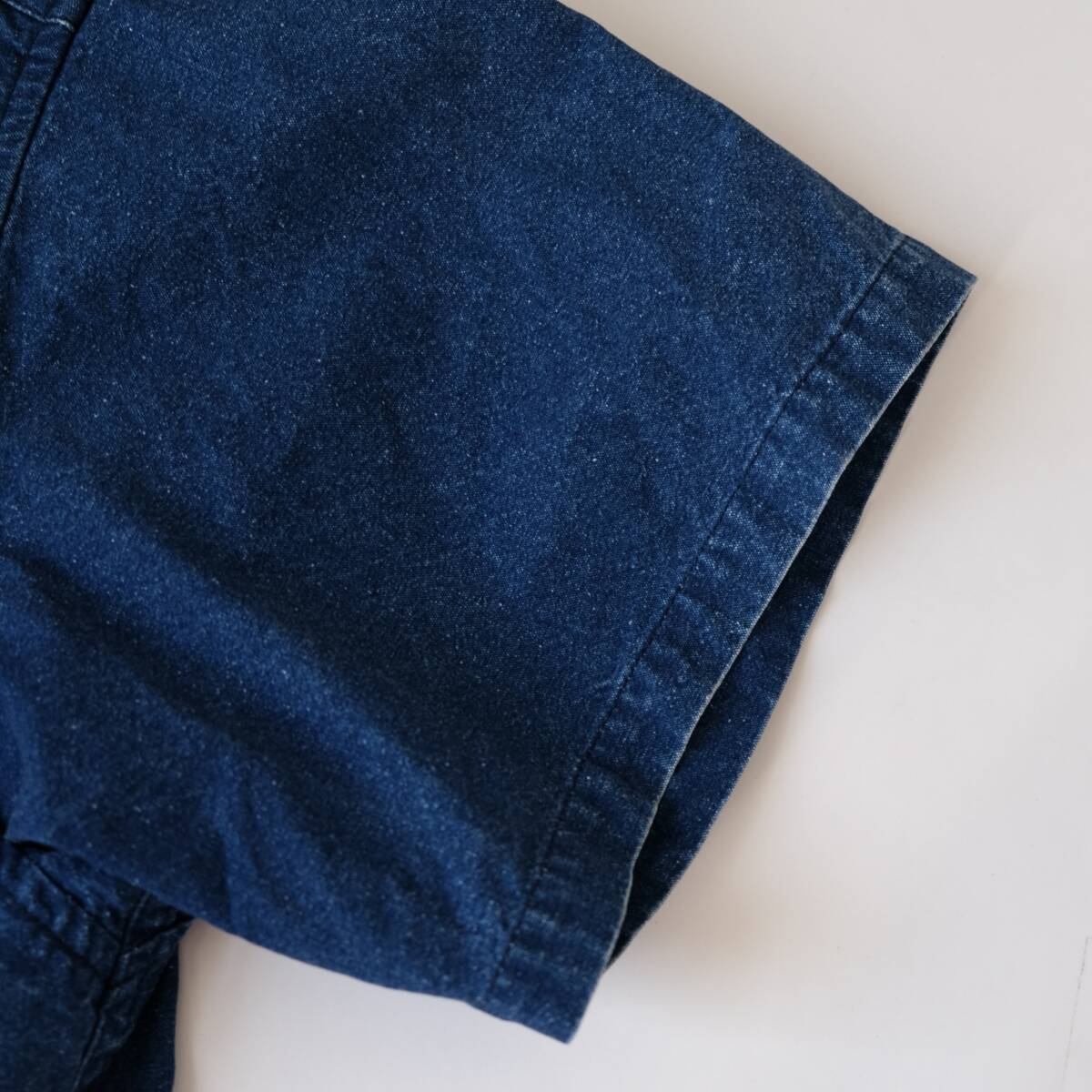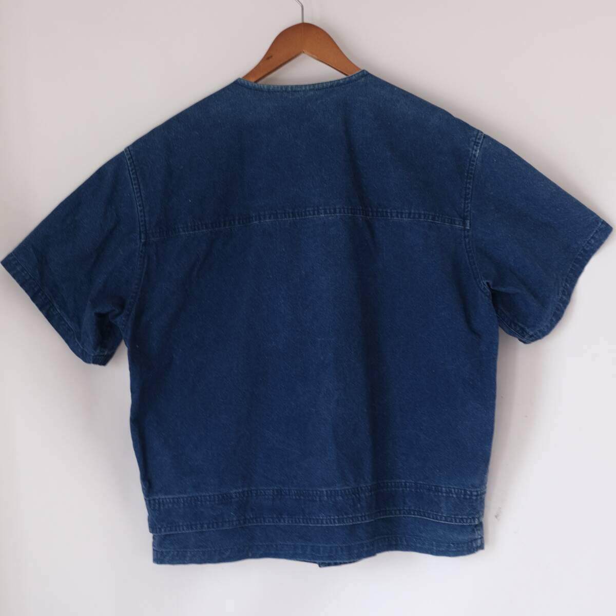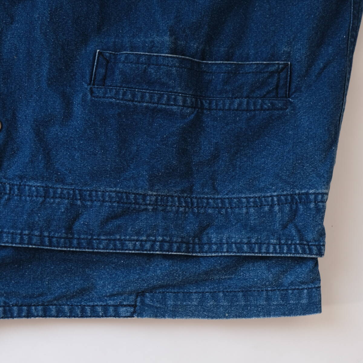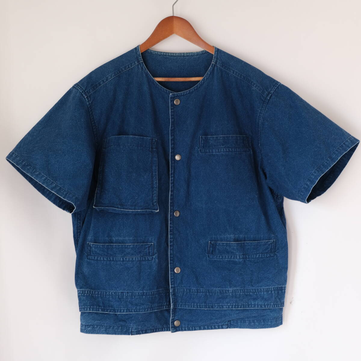 80s【 JUN MEN 】ジュンメン インディゴ染め ノーカラー スナップ 半袖 ジャケット / 藍染 / ビンテージ old vintage indigo 日本製