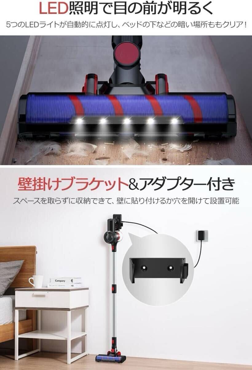 コードレス掃除機 LCD液晶ディスプレイ サイクロン 掃除機 スティッククリーナー ハンディクリーナー 2WAY 電気掃除機 左右180°上下90°回転 HEPAフィルター 多重濾過 LEDライト5つ付 着脱式バッテリー 伸縮型パイプ 強弱2段階モード 壁掛けブラケット アダプター付き PSE認証済