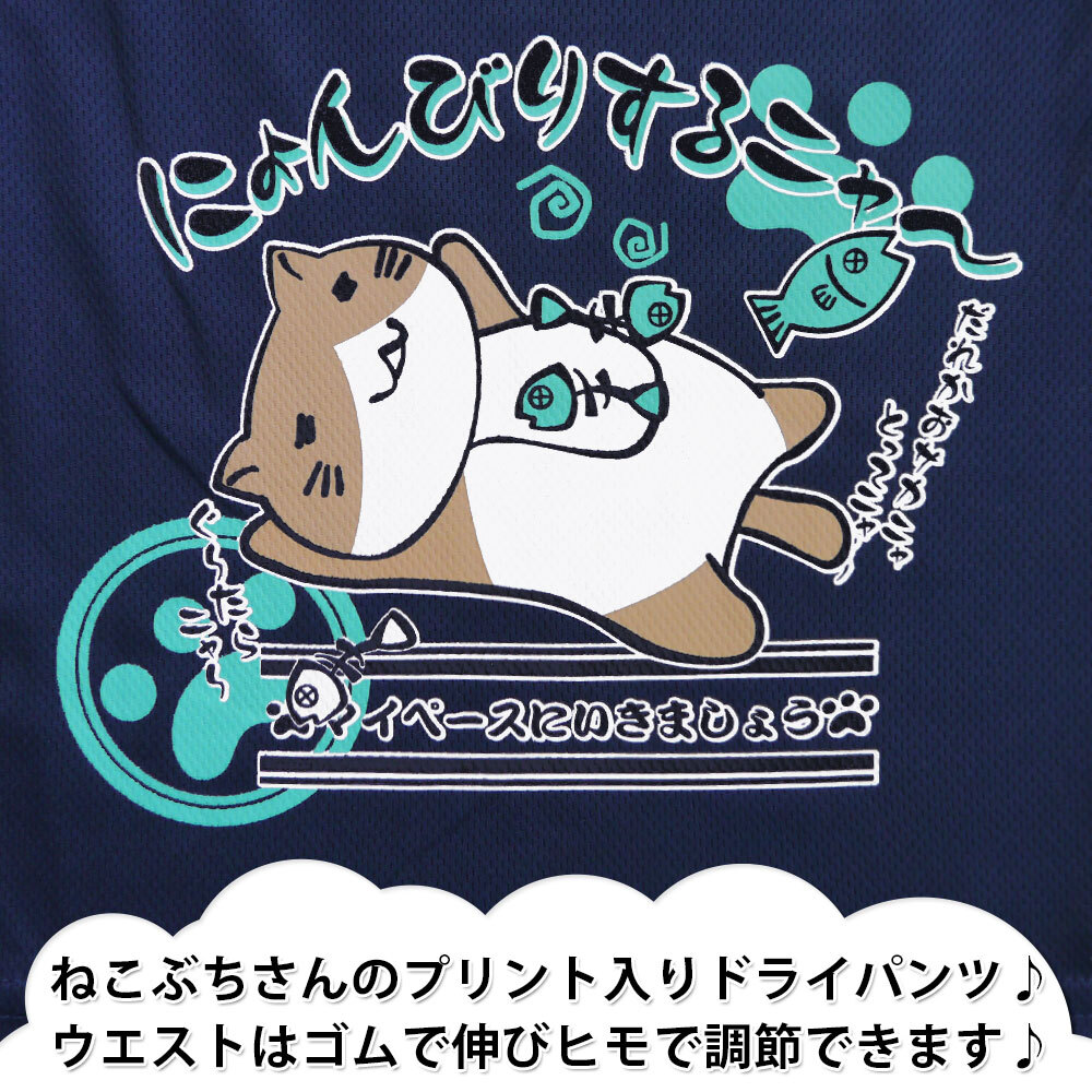 正規店仕入れの新品未使用品です ポリエステル素材で、吸汗速乾に優れます ねこぶちさんのプリント入りドライパンツ ウエストはゴムで伸びヒモで調節できます |