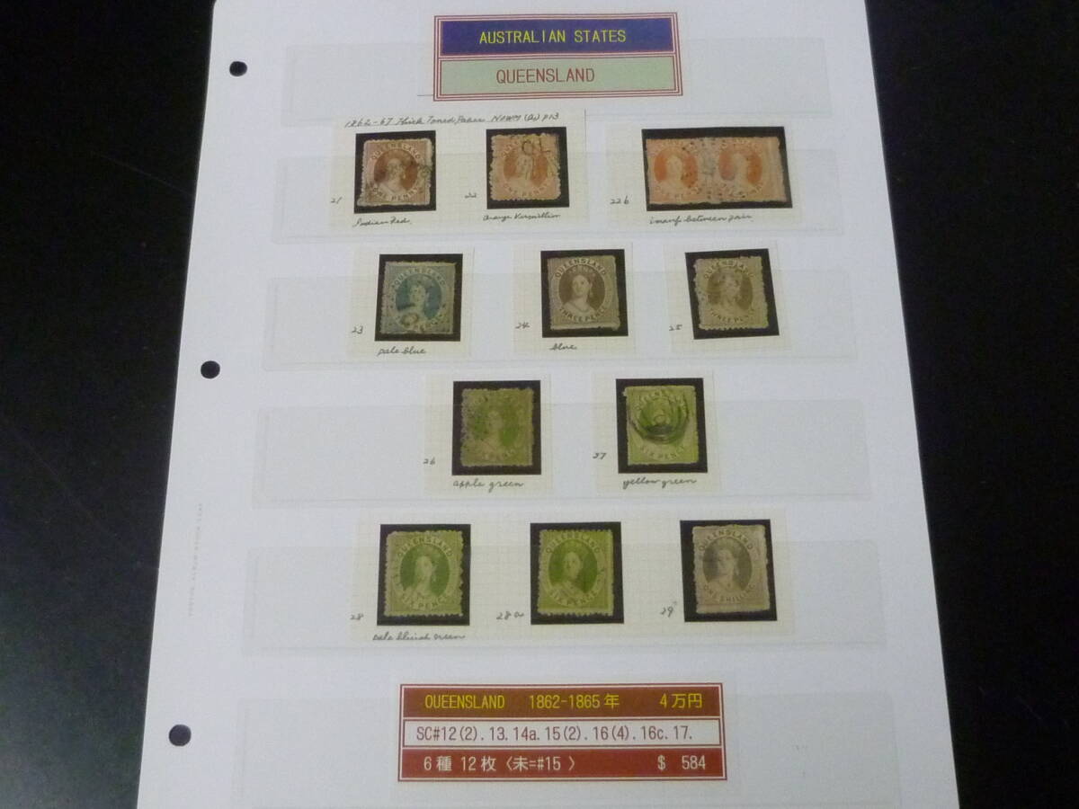 23L M №22 オーストラリア切手 QUEENSLAND 1862-1865年 クラシック SC#12-17の内 6種 計12枚 使用済・未使用1種 【SC評価 $584】